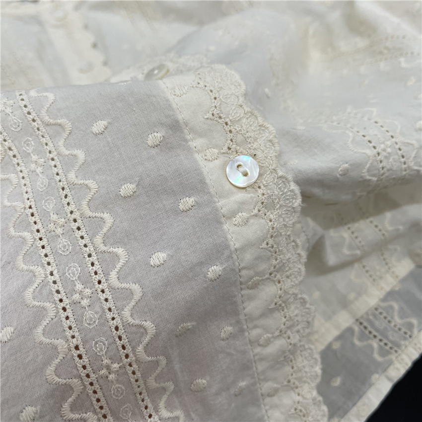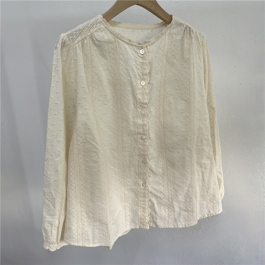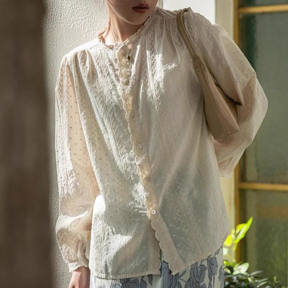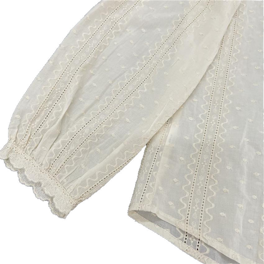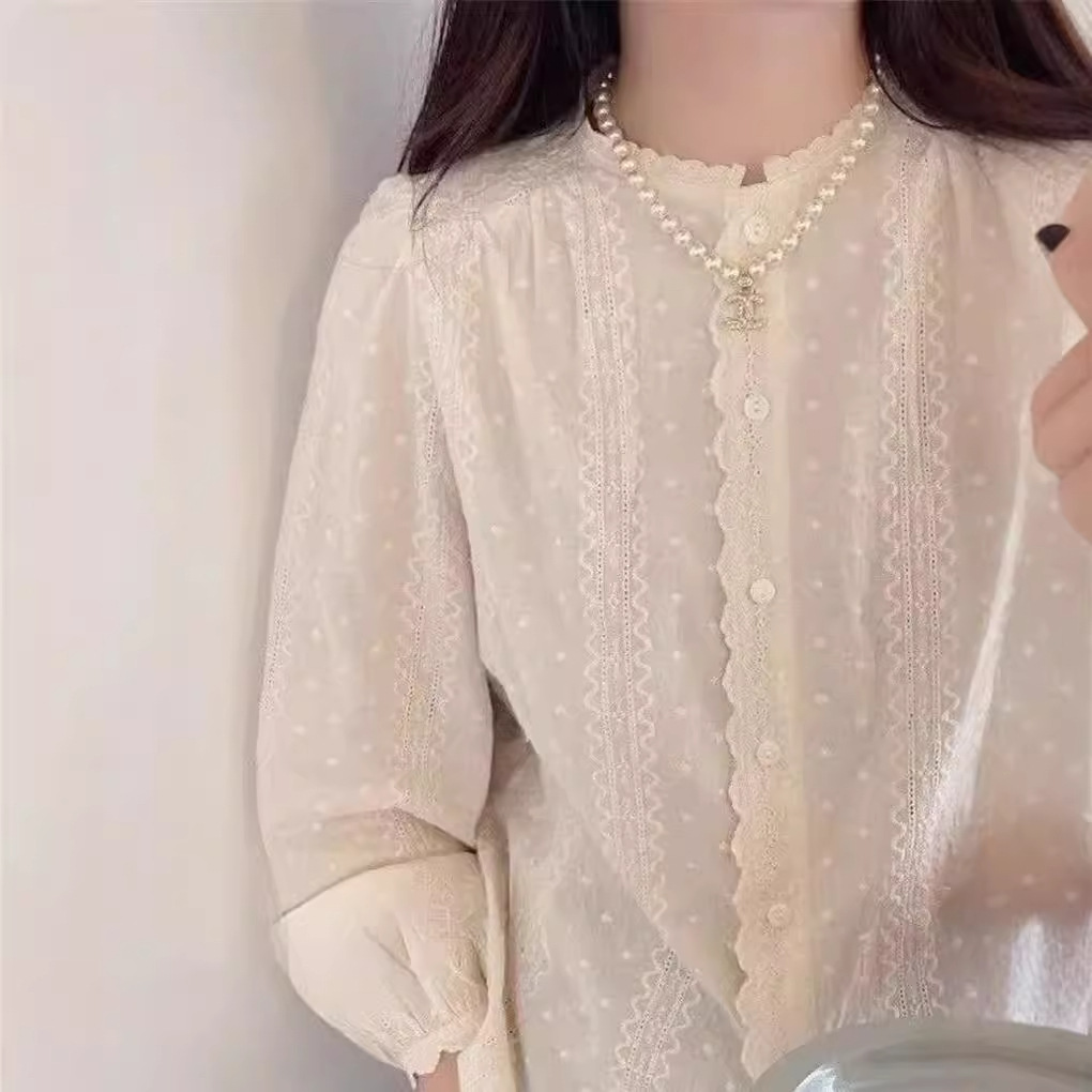 французская кружевная рубашка с вырезом ~ нежный кружевной воротник, элегантный кружевной свободный топ с длинными рукавами