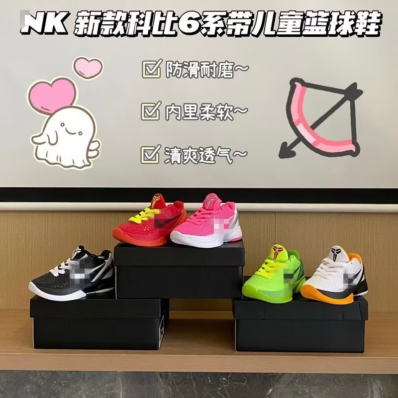 [Pu'er] Детские баскетбольные кроссовки Kobe 6-го поколения Green Hornet Kobe 6, практичная универсальная износостойкая спортивная обувь для мальчиков и девочек