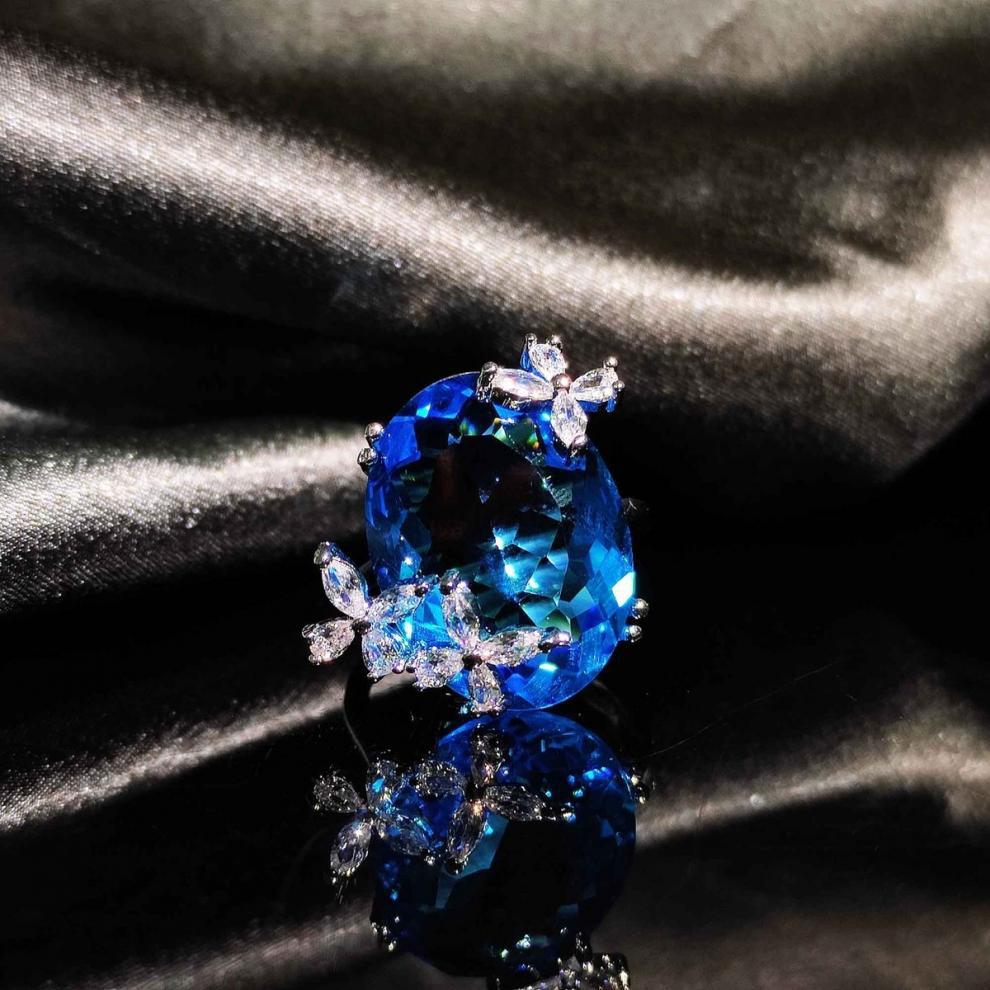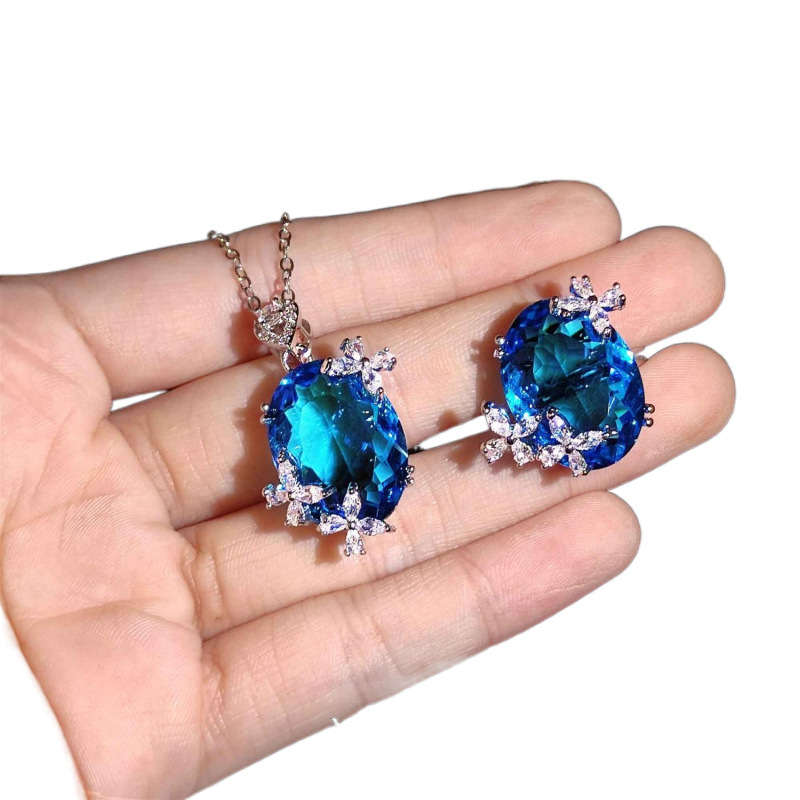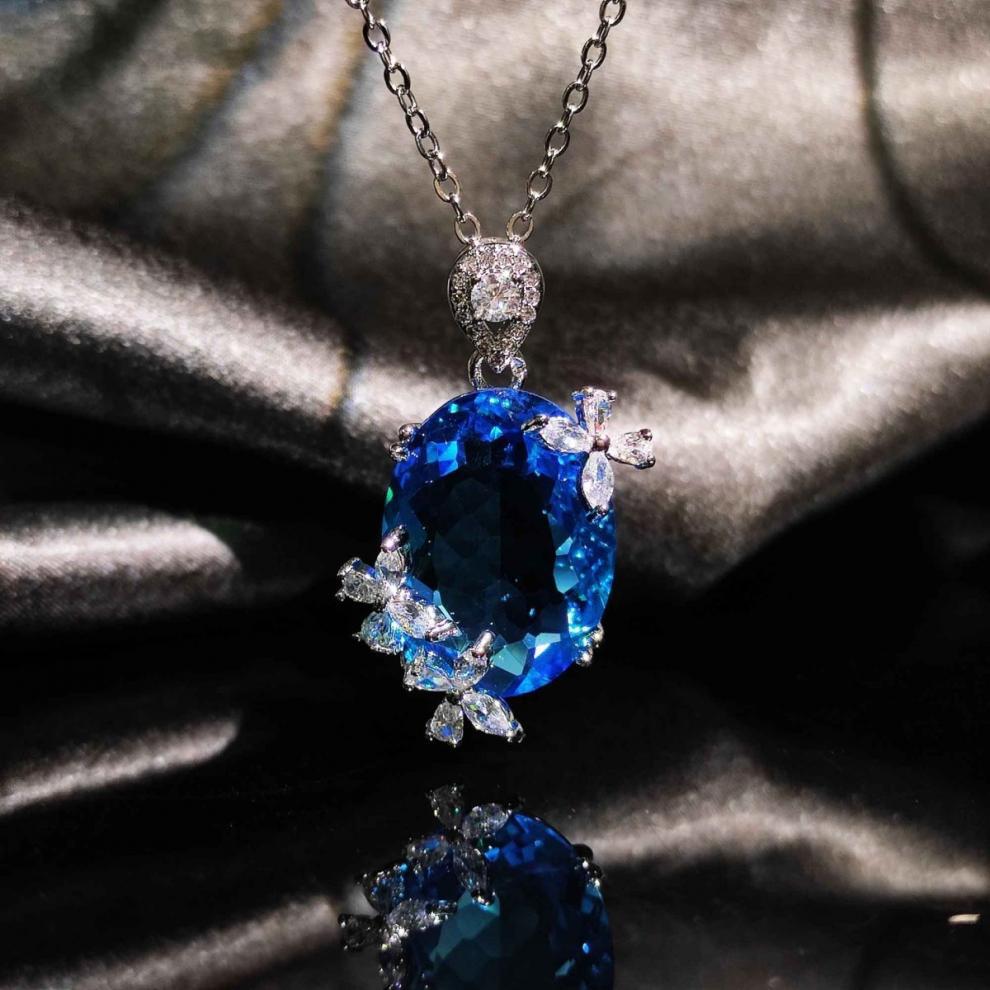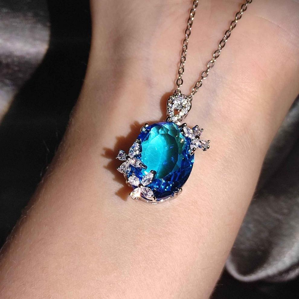 Серебряный натуральный подводный кулон костюм легкий экстравагантный большой драгоценный камень голубиное яйцо ожерелье женский лепесток бабочка открытый кольцо