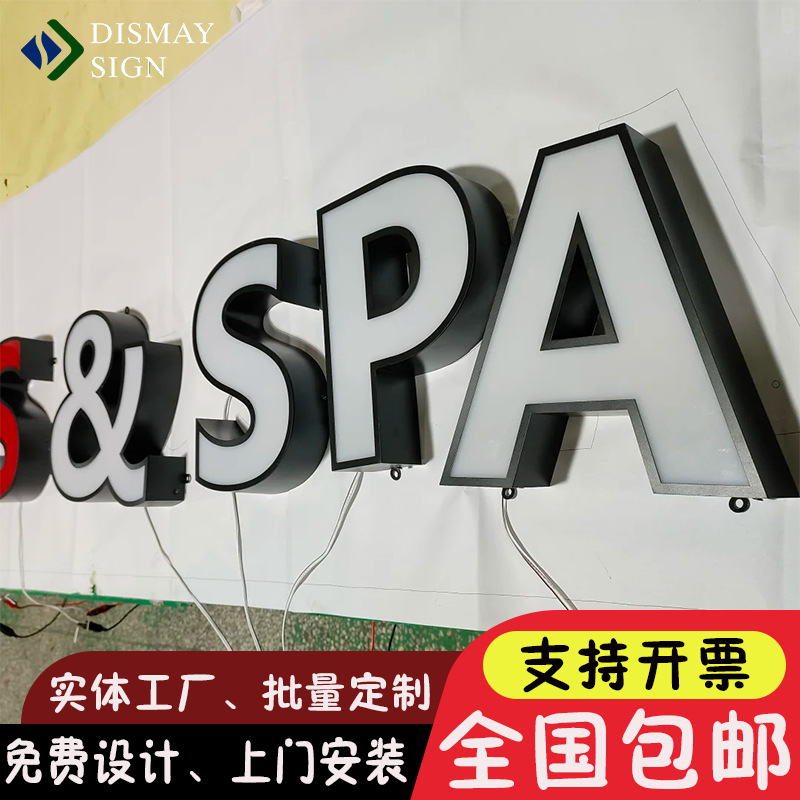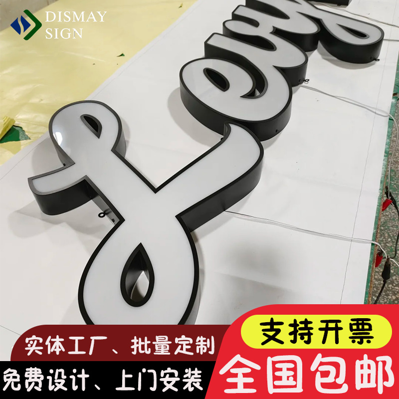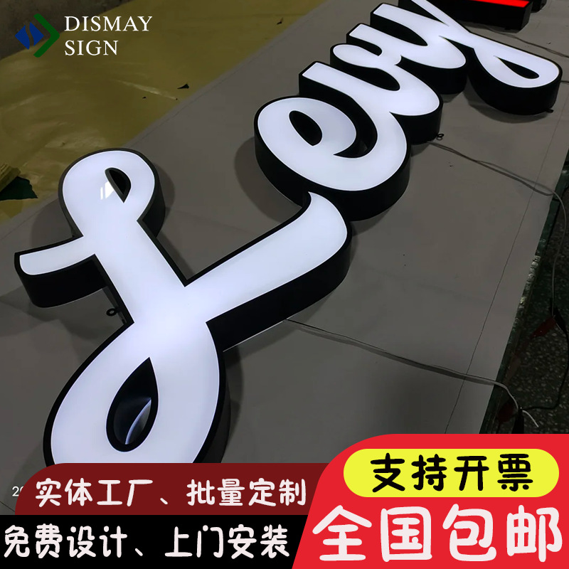 Рекламная вывеска с логотипом на двери, световой короб с краями, светящиеся персонажи, фасад, акрил, мини-персонажи из нержавеющей стали, светящиеся персонажи сзади
