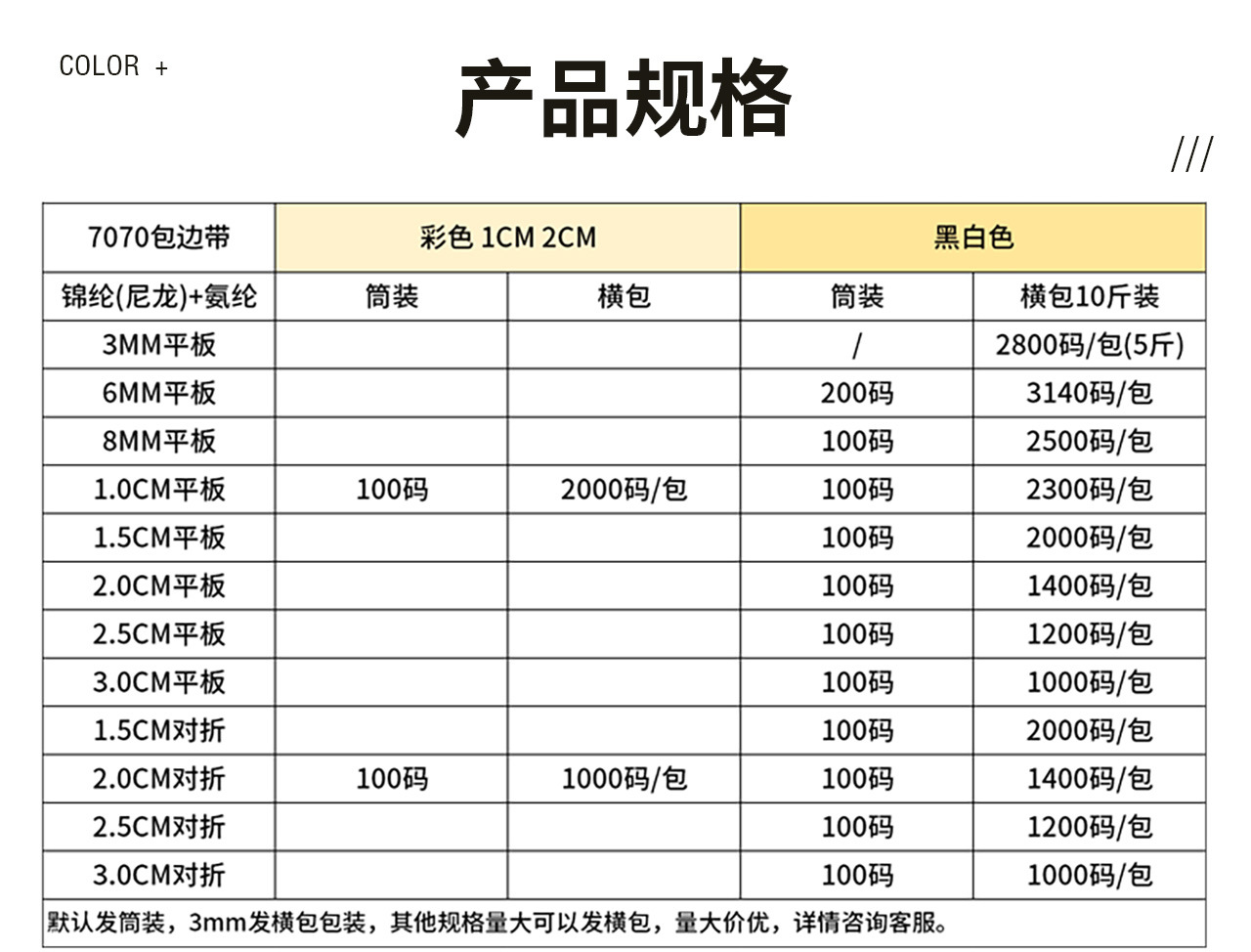 黑白色 0.3mm 5斤装,其他各规格10斤装