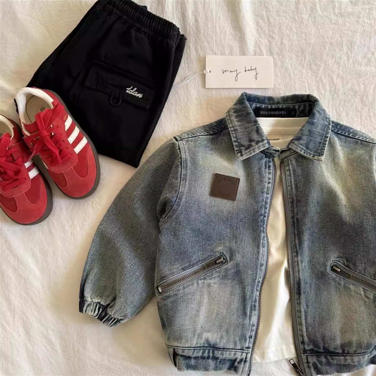 Детская джинсовая куртка 2025 весна и осень новый мужской и женский ретро куртка сделанная старая детская корейская джинсовая одежда