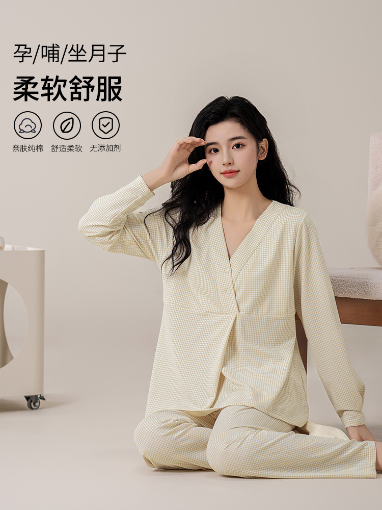 Прямые продажи с фабрики, новая послеродовая одежда, 7А, антибактериальные хлопковые пижамы для кормления, женская весенне-осенняя одежда для кормления после родов, костюм для беременных