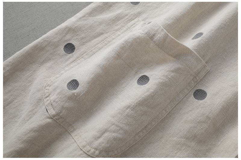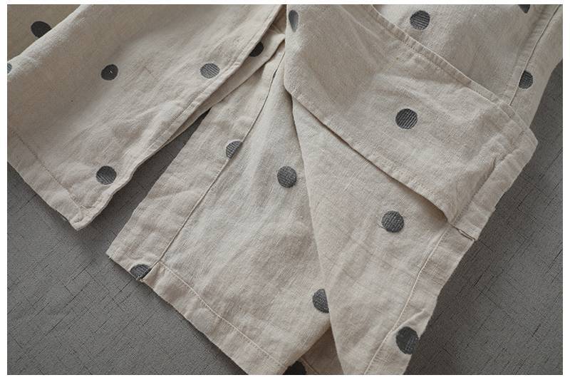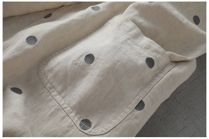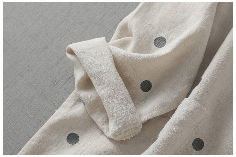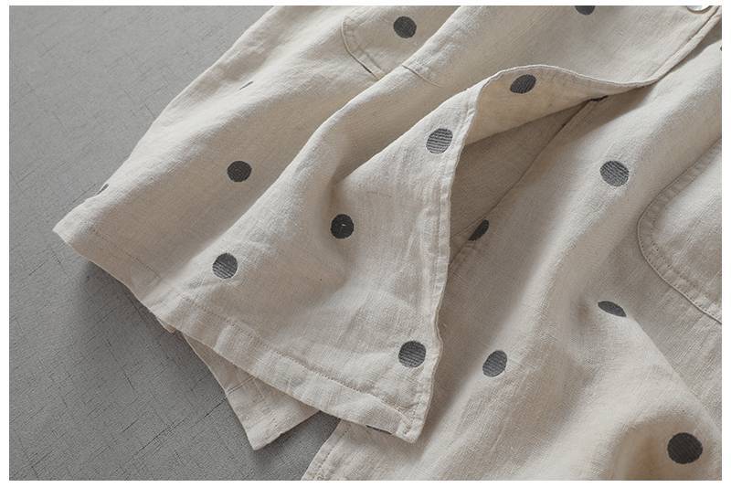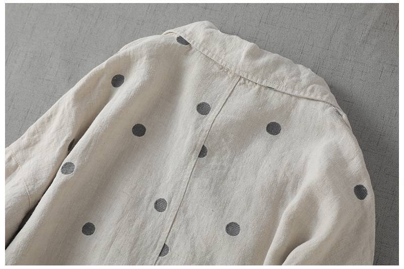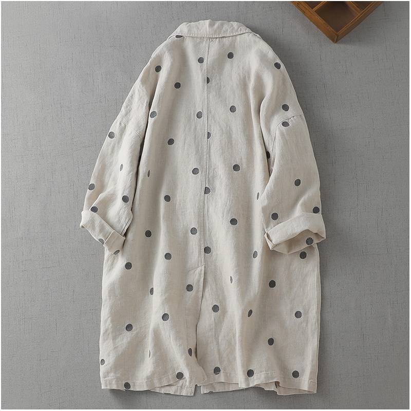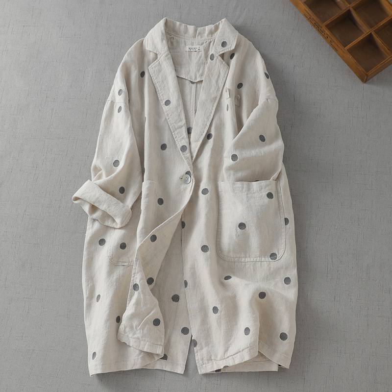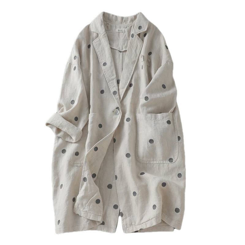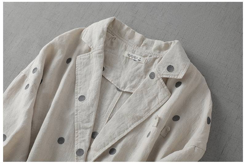 Осенняя женская льняная куртка в горошек с художественной вышивкой и длинными рукавами, свободный костюм средней длины в японском стиле с тонкой ветровкой