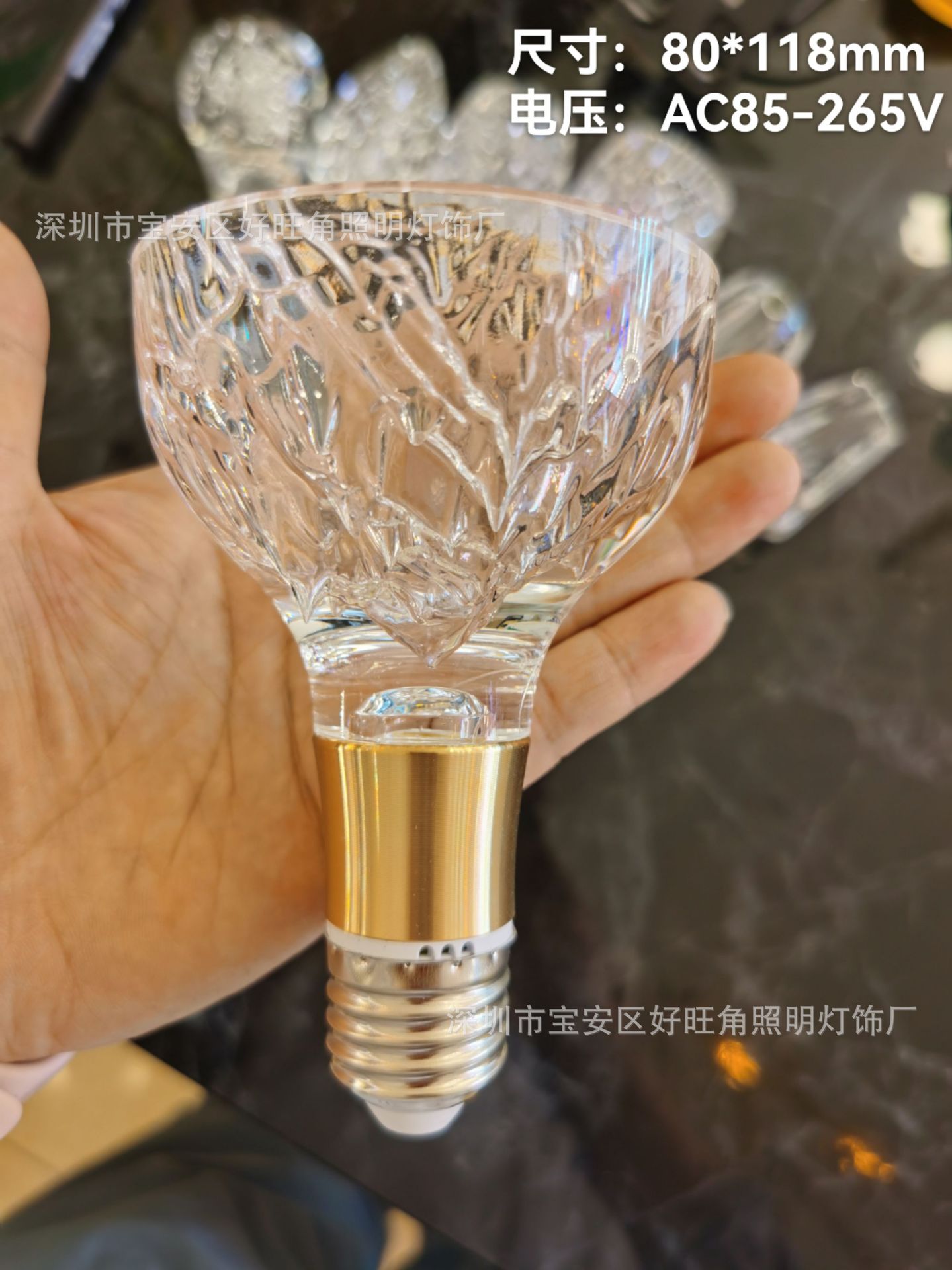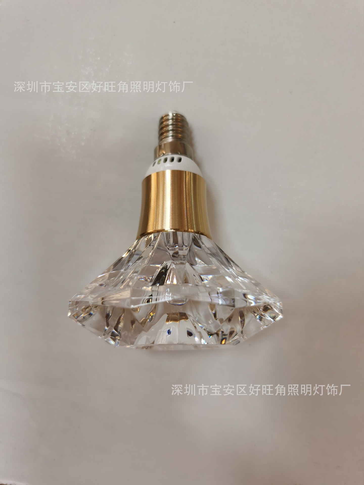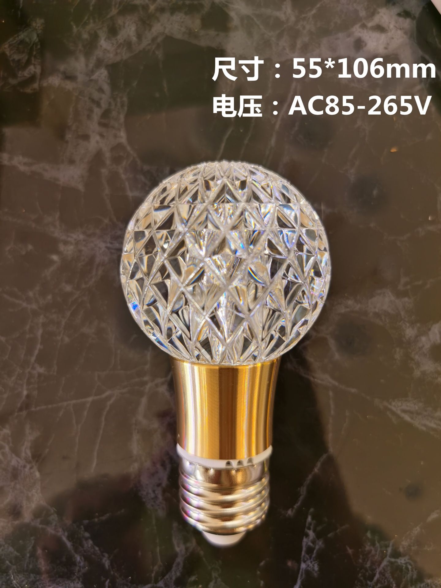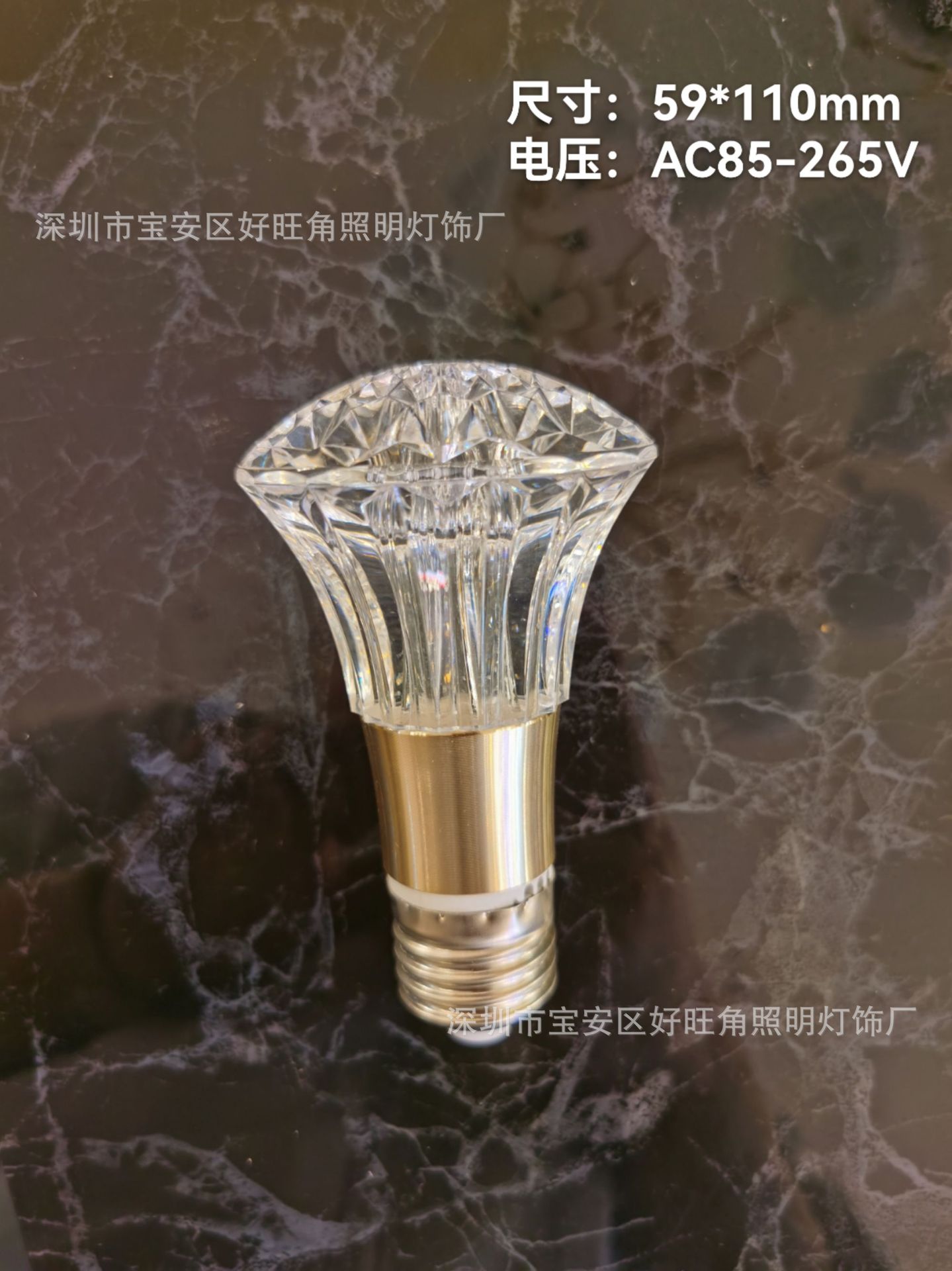 此款为5W亚克力水晶灯泡,电压AC85-265V.全系列可定制彩色红黄蓝绿粉五个彩色,彩色价格+2元,可做E12-E14-E26-E27灯螺口,量大从优