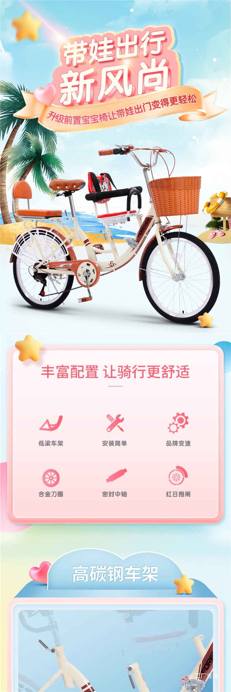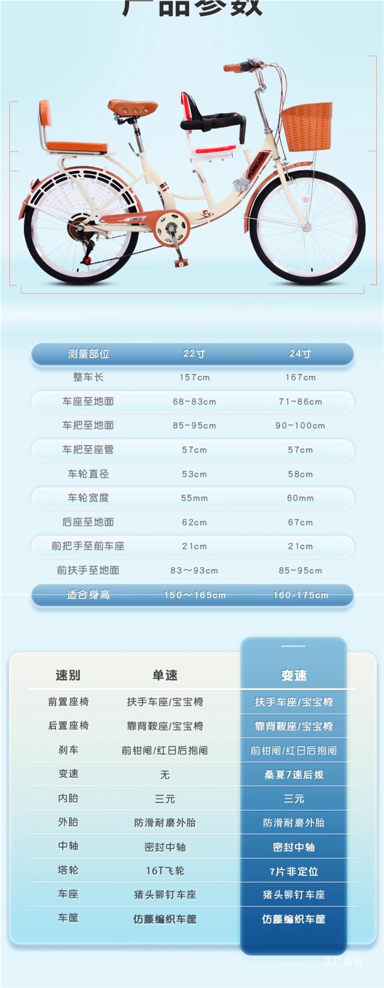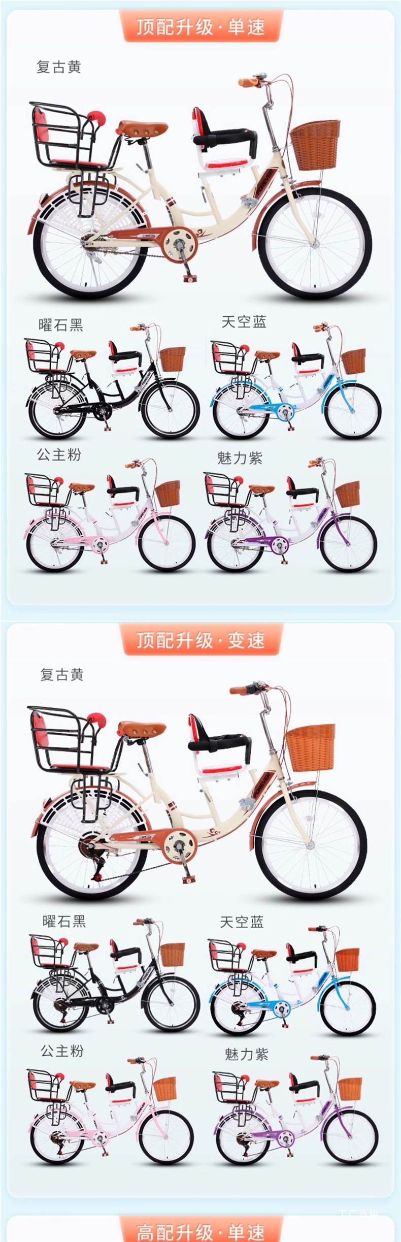 Легкий семейный велосипед для мам и детей с детским сиденьем для подвоза и встречи детей.