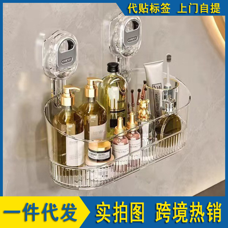 Настенная полка-органайзер для ванной на присосках, без сверления, для туалетных принадлежностей и косметики, легкий люкс.