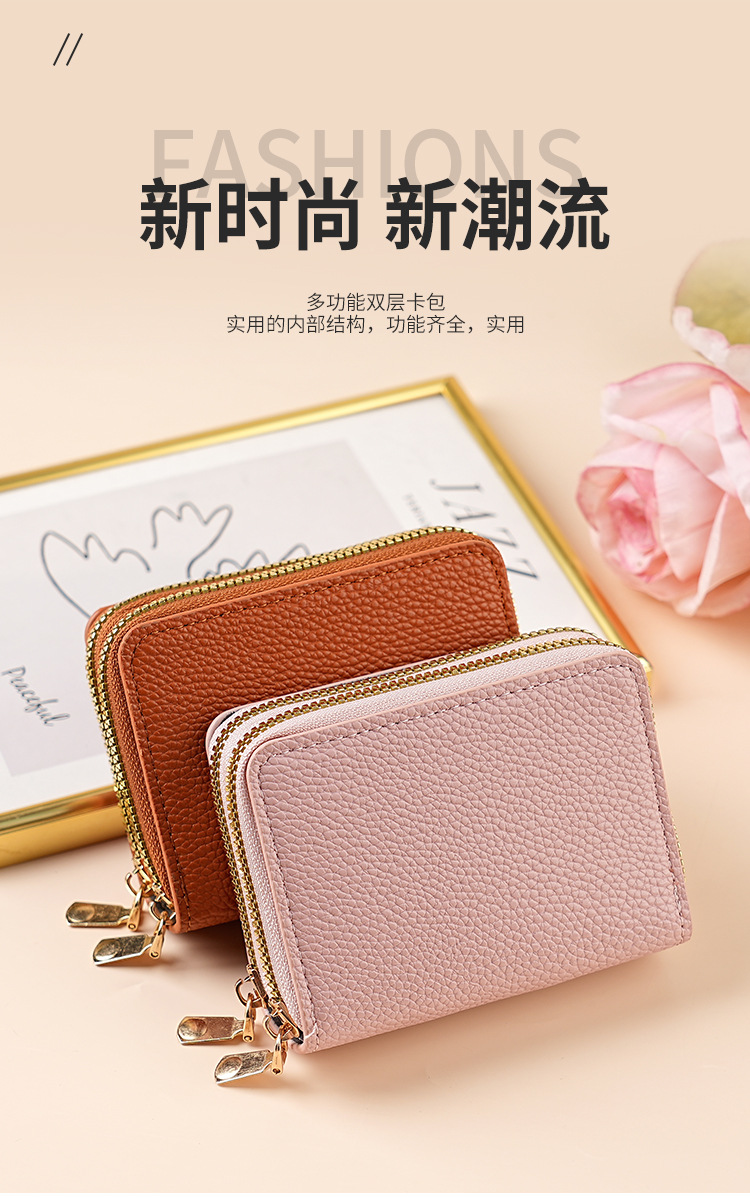 2025 Многофункциональный держатель для карт оптом от производителя Новый органайзер для карт Двухслойный кошелек с молнией Женский кошелек Большой вместимости Держатель для карт