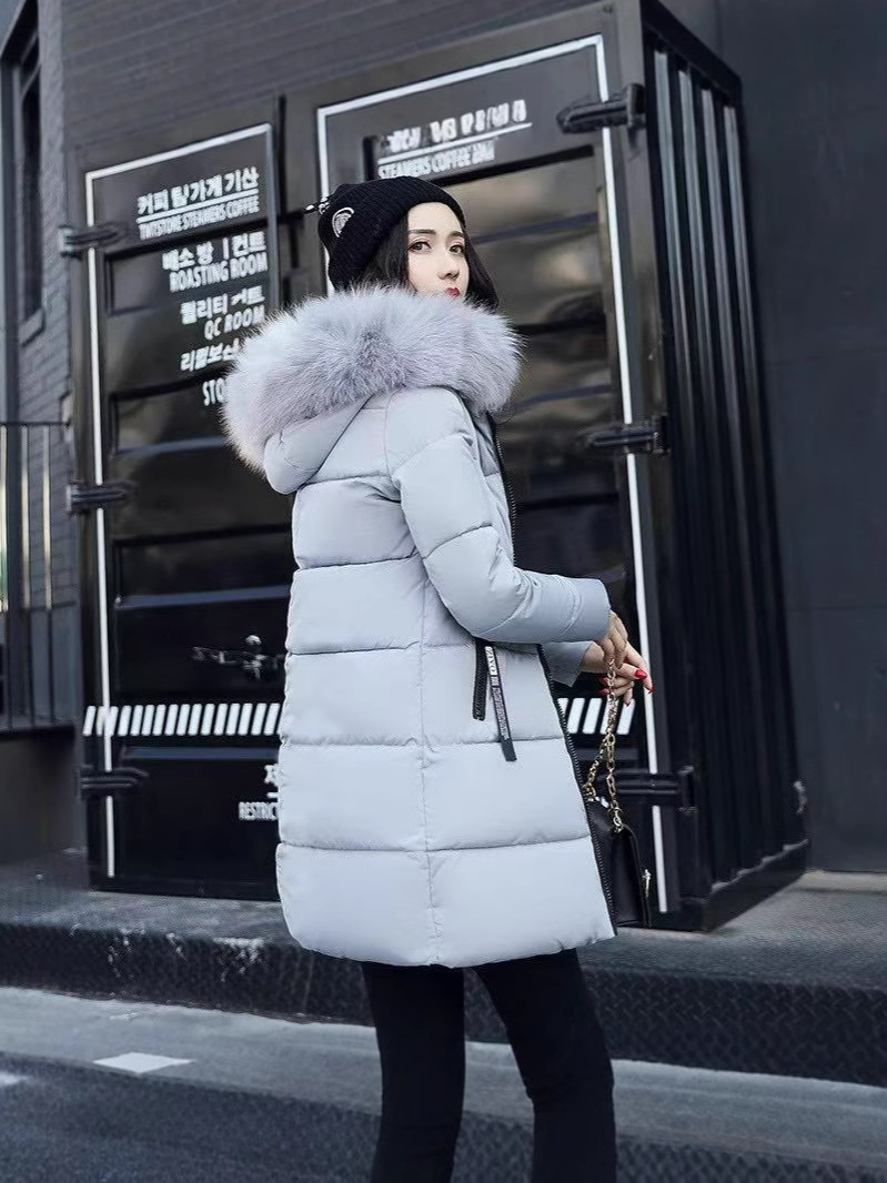 Трансграничная хлопковая верхняя одежда 2025, женская тонкая хлопковая верхняя одежда средней длины, модная хлопковая верхняя одежда большого размера с большим меховым воротником