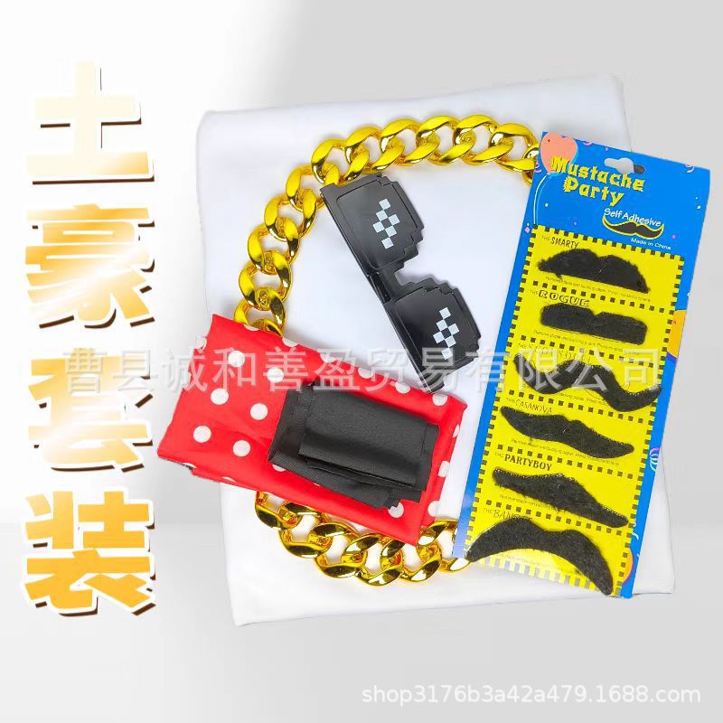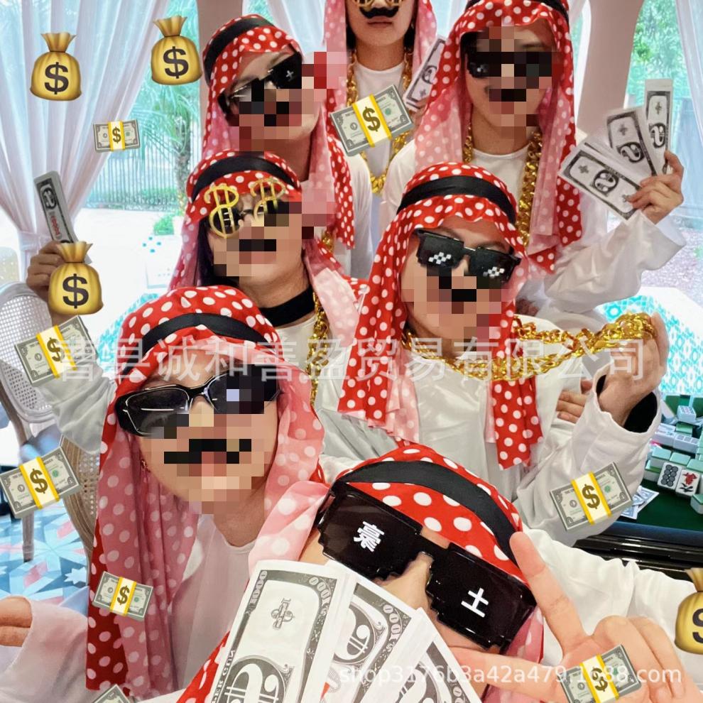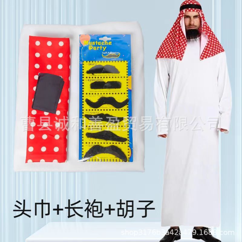 Богатый платок из трех частей + халат + борода; Набор из пяти предметов: богатый платок + халат + борода + ожерелье + очки.