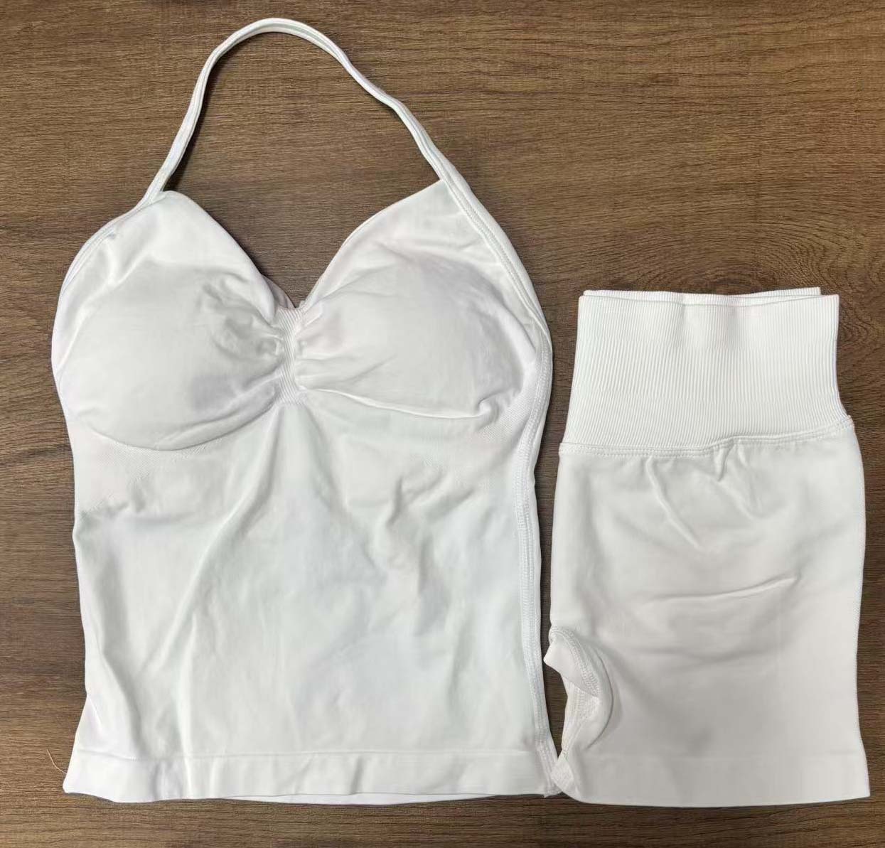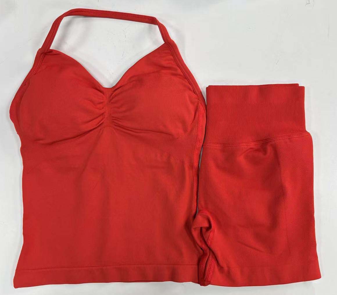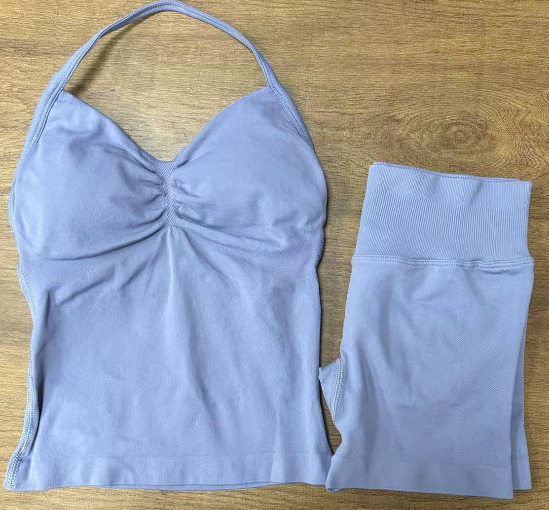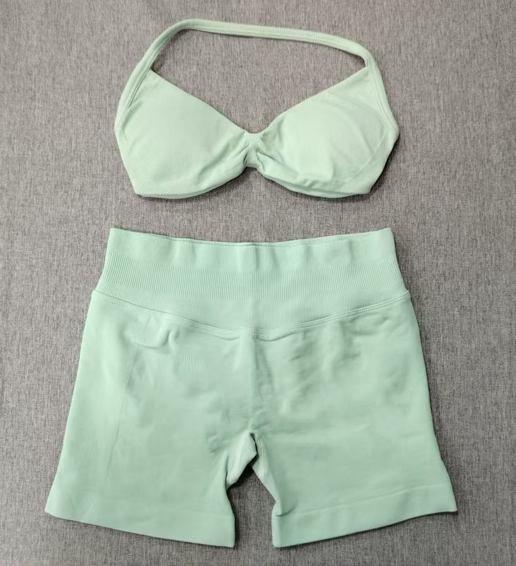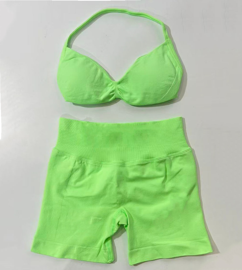 Комплект DF: шорты Amazon, мини-бюстгальтер, высокая эластичность, ультратонкий матовый нейлон, с завязками на шее, красивый спортивный топ с открытой спиной, для йоги