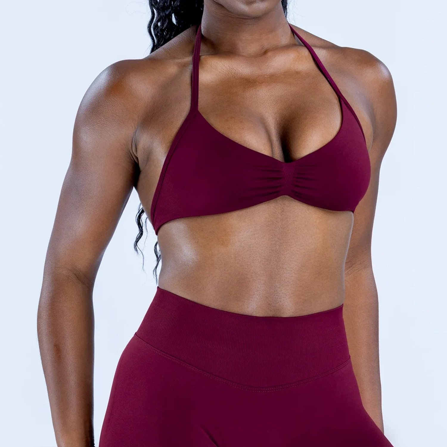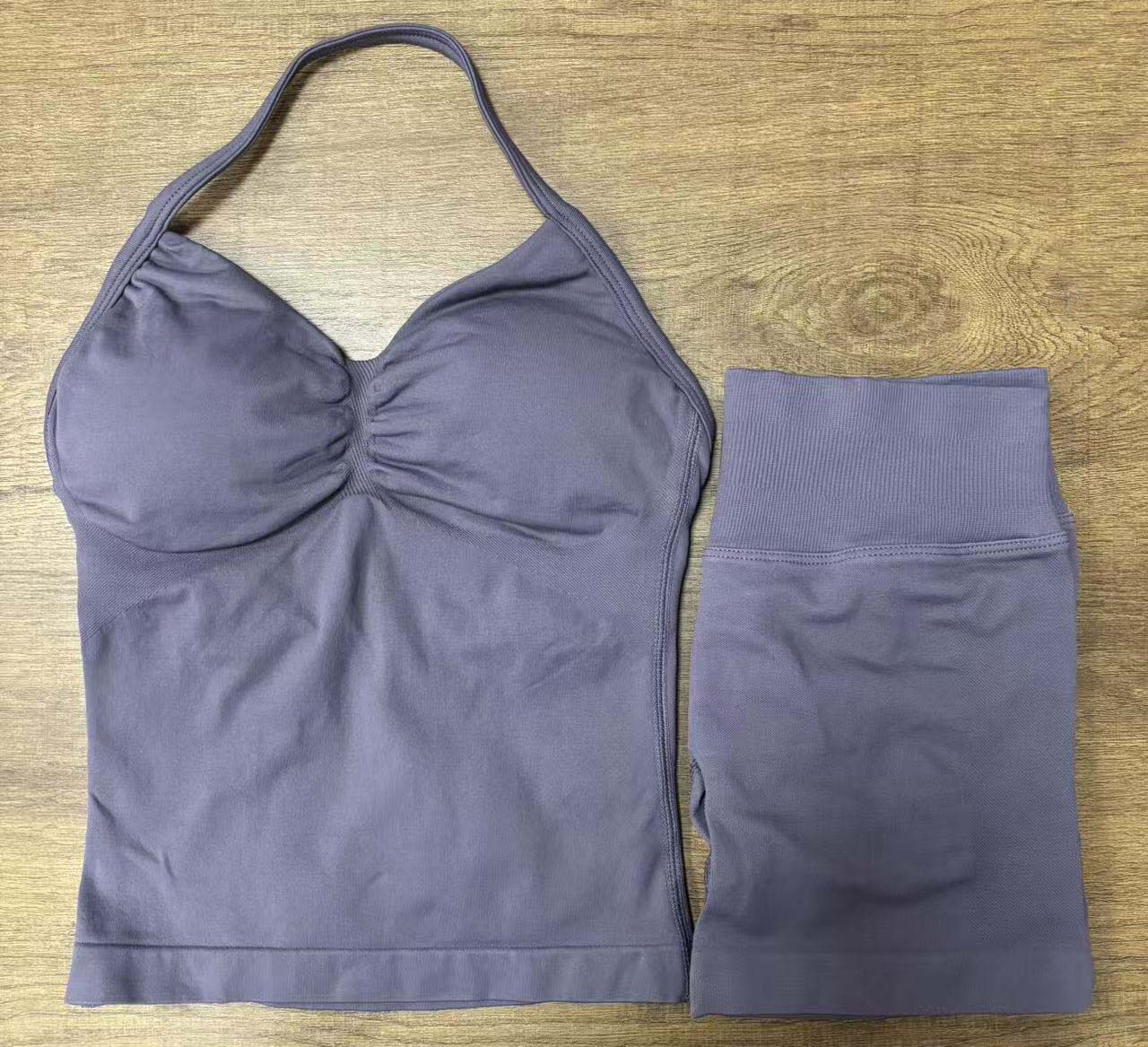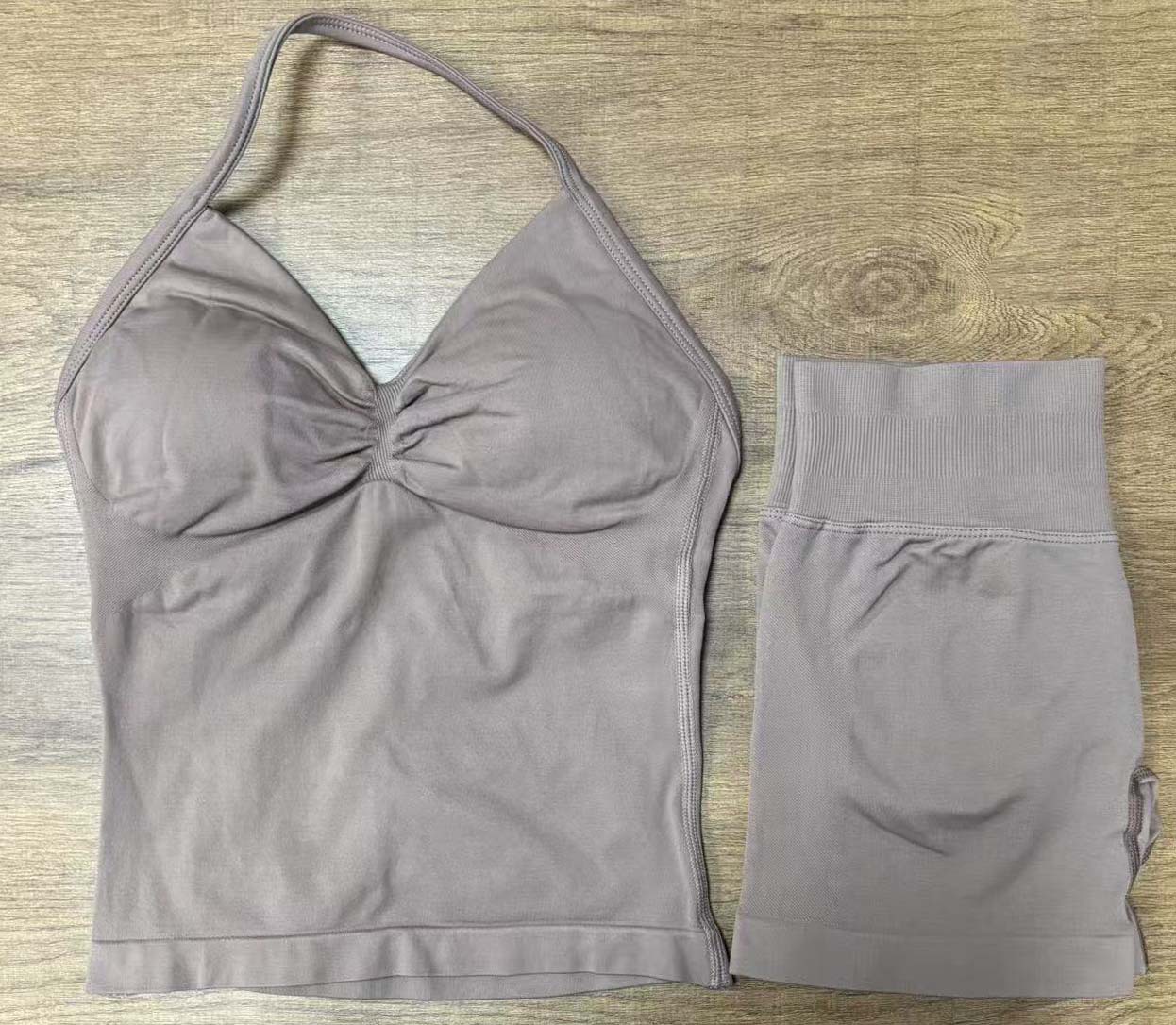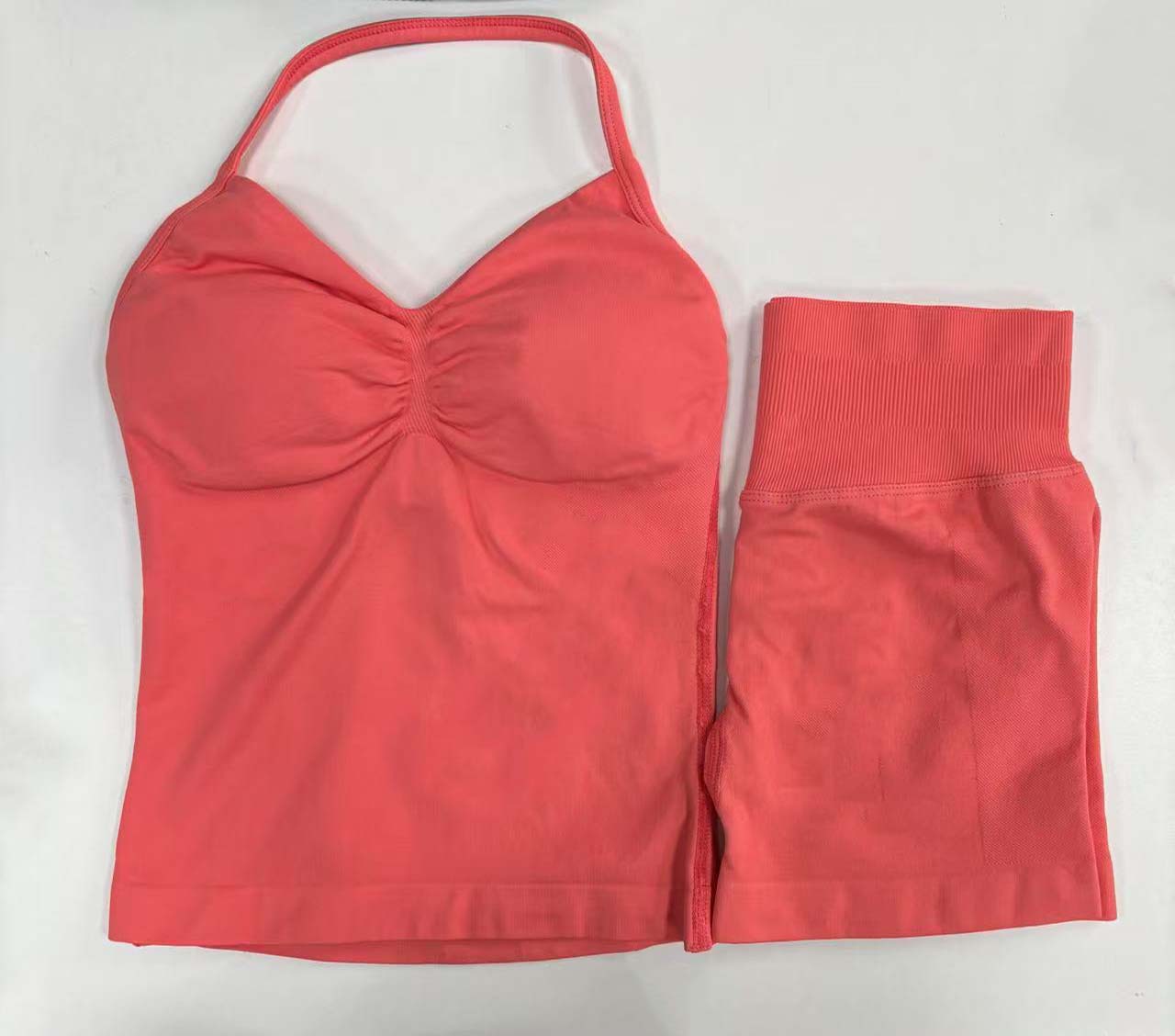Комплект DF: шорты Amazon, мини-бюстгальтер, высокая эластичность, ультратонкий матовый нейлон, с завязками на шее, красивый спортивный топ с открытой спиной, для йоги