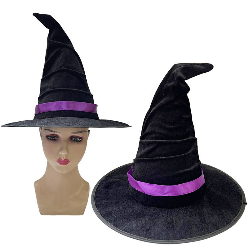 Гладкая бархатная мятая шляпа ведьмы; Бархатная мятая шляпа ведьмы: добавьте фиолетовую пятиконечную звезду; Бархатная мятая шляпа ведьмы: с оранжевой пятиконечной звездой; Гладкая бархатная мятая шляпа ведьмы: с фиолетовой лентой.; Бархатная мятая шляпа ведьмы: с подвесными украшениями в виде летучей мыши.