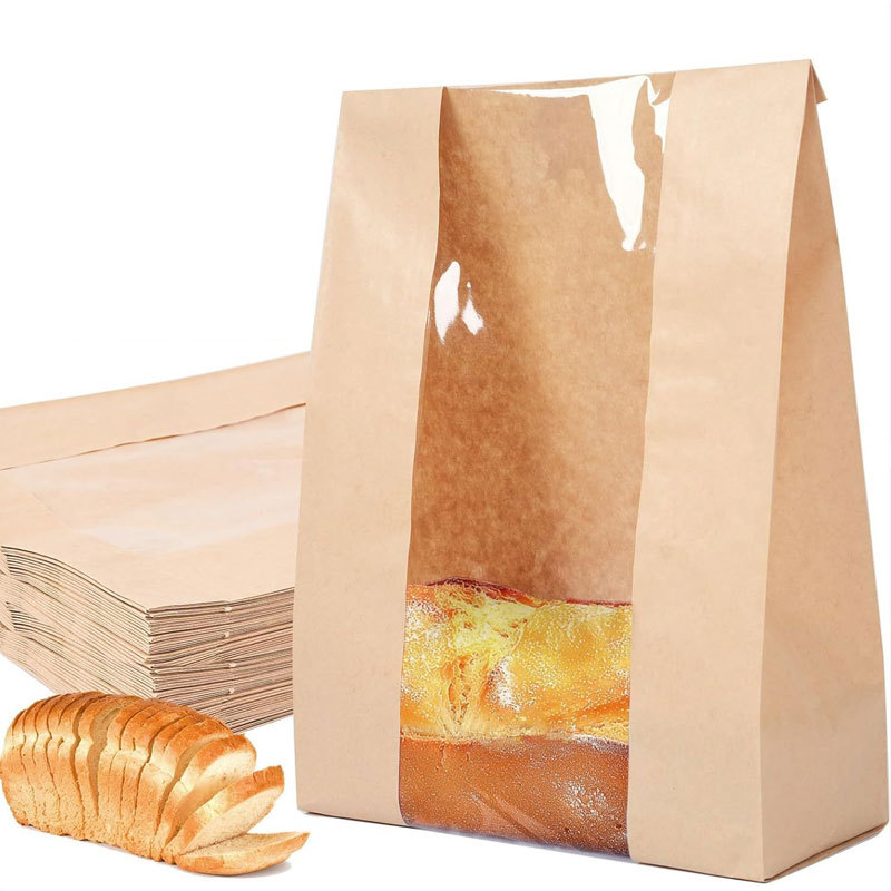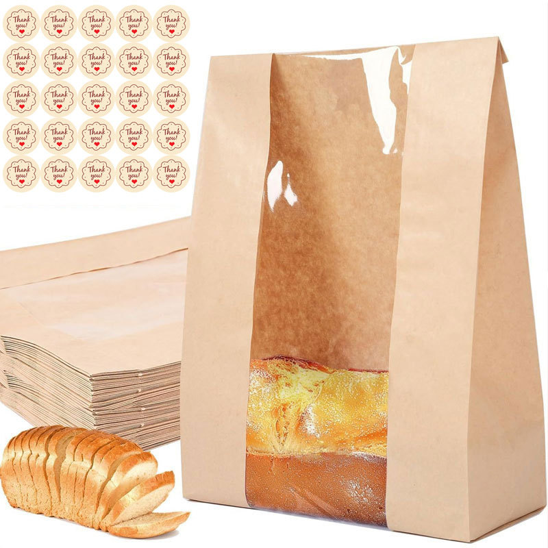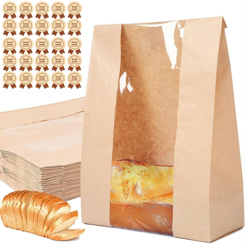 Пакет для упаковки тостов с окном, 450 г, из крафт-бумаги, для нарезанных тостов, самозаклеивающийся, для выпечки и хранения продуктов