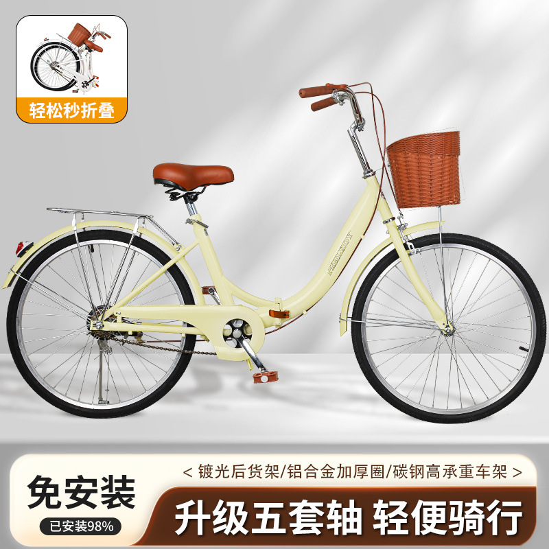 Складной велосипед для мужчин и женщин, легкий, без надувных шин, 24-дюймовый 26-дюймовый студенческий велосипед для взрослых с подшипниками