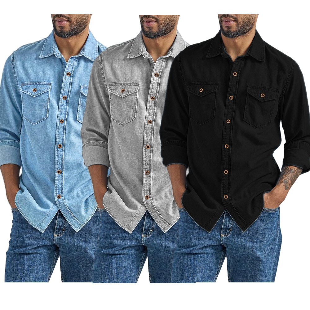 Мужские рубашки из искусственного денима в наличии, бестселлеры Amazon, мужские кардиганы для весны и осени, европейская версия Wish, большие размеры, быстрая распродажа.