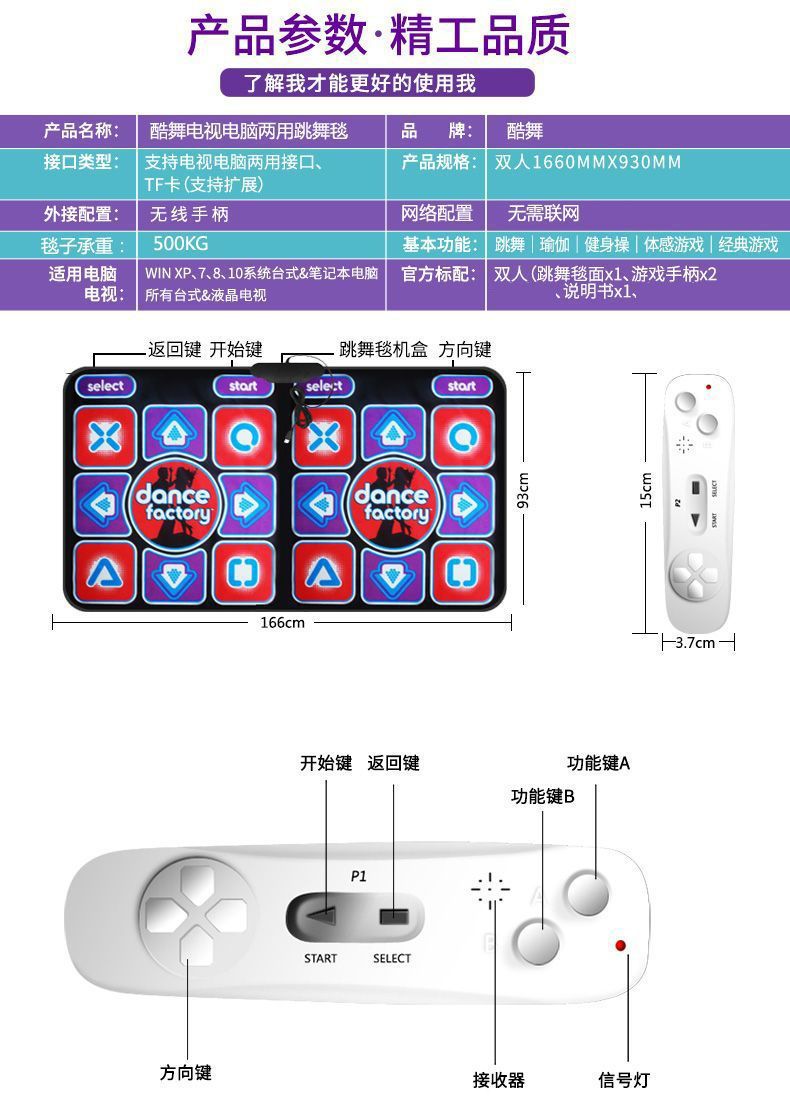 [11,3 тысячи человек собираются] Крутой танцевальный коврик для танцев, ТВ, выделенный для бега, беспроводной двойной домашний 3D соматосенсорная игра