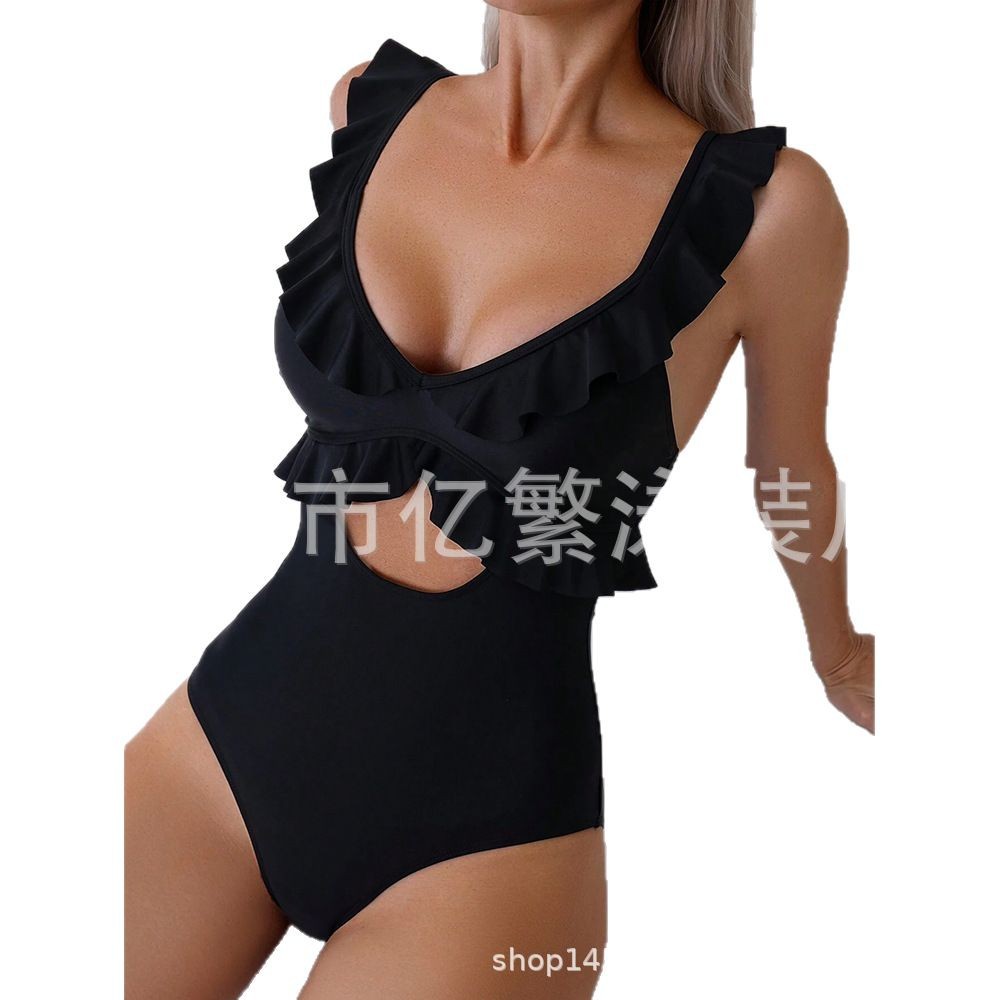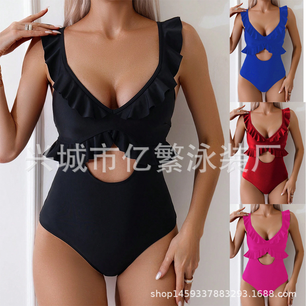 2025 новый купальник для женщин с рюшами и вырезами, утягивающий, для контроля живота, однотонный, для трансграничной торговли