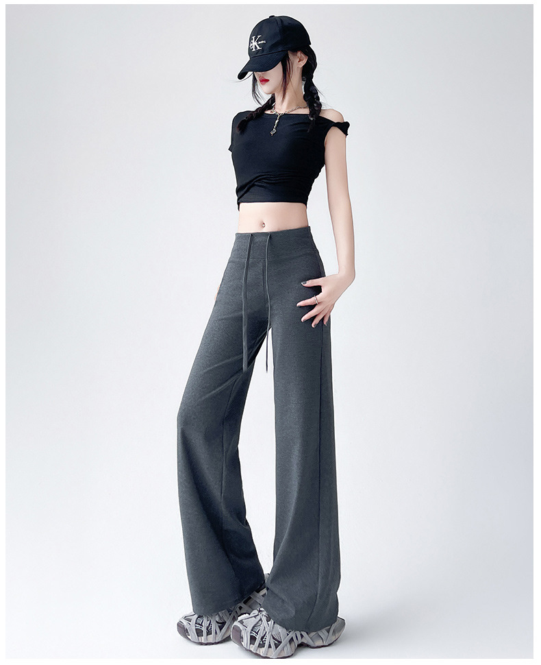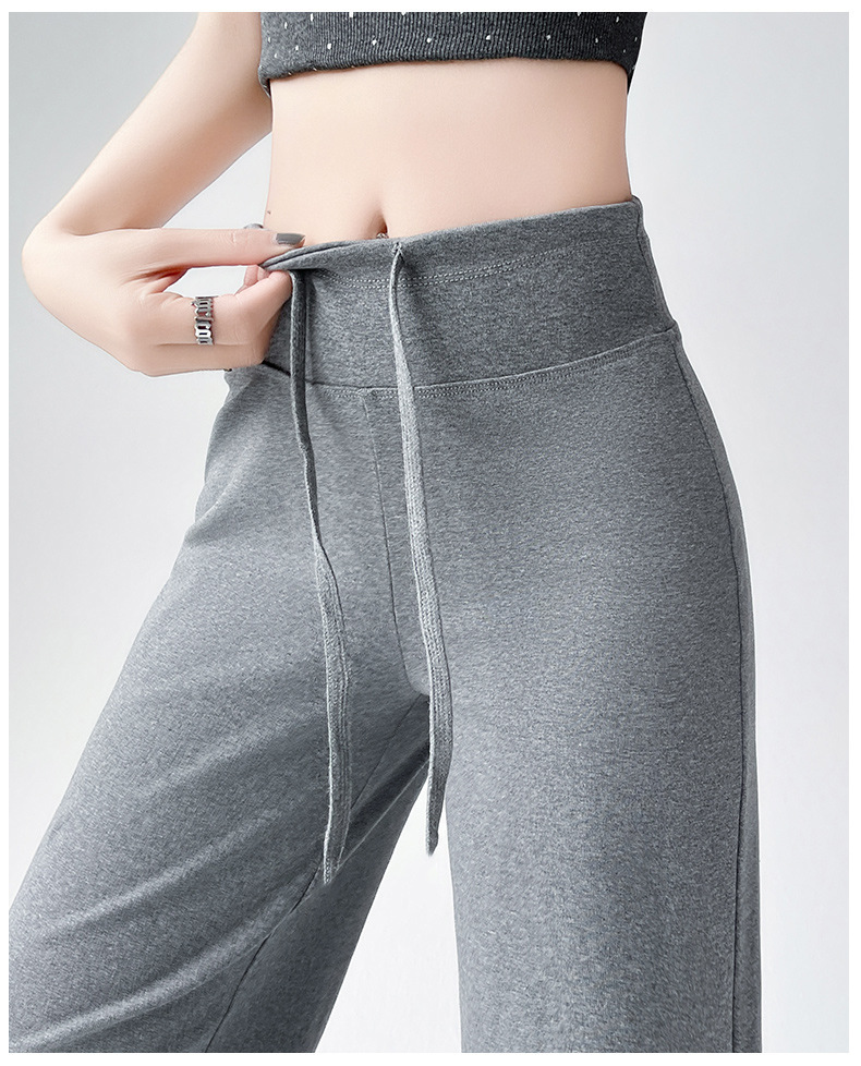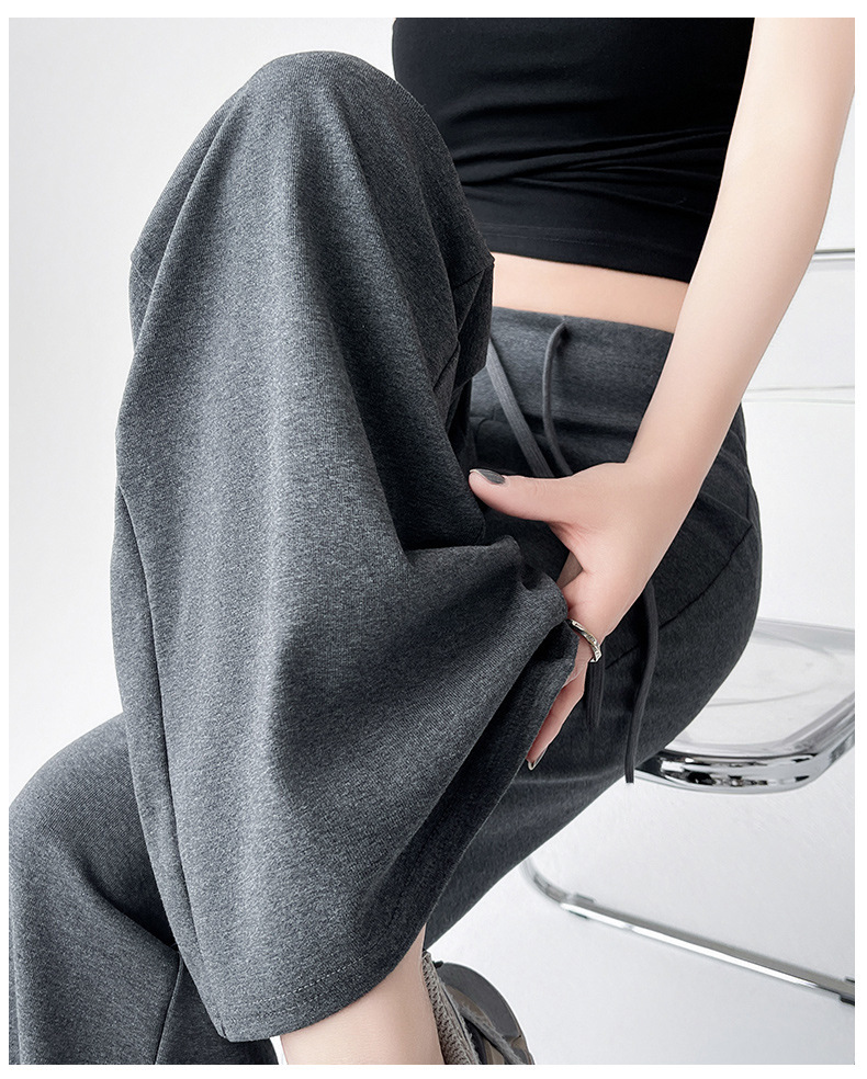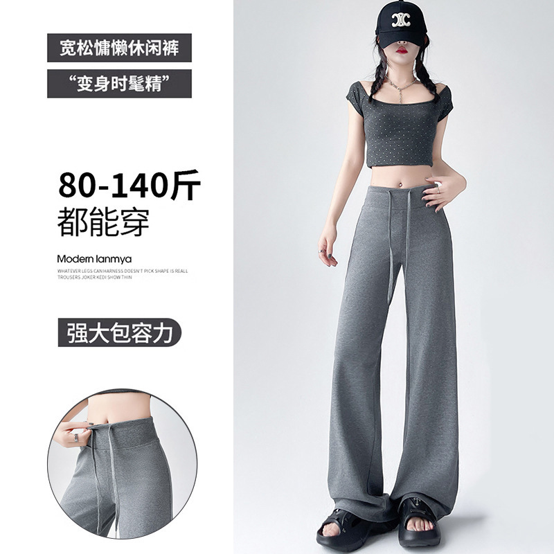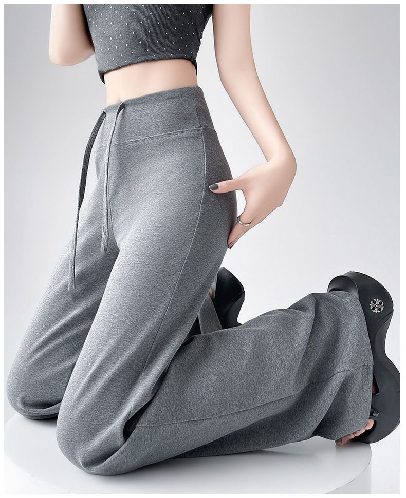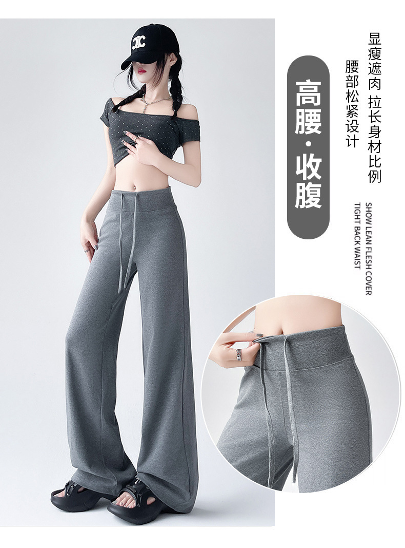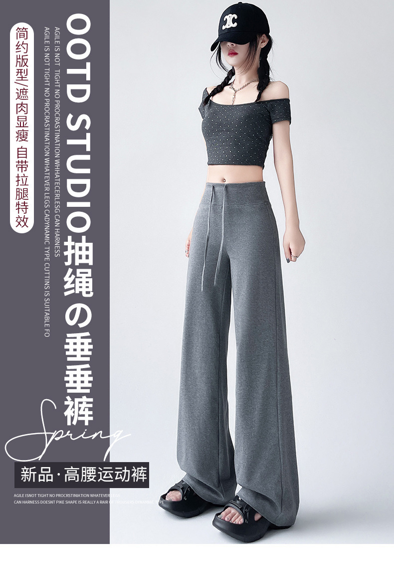 Весна и осень Новый стиль Спортивные штаны Женские воздушные хлопковые повседневные брюки Американские брюки с завязками Тонкие спортивные брюки с высокой талией и прямой драпировкой Широкие брюки