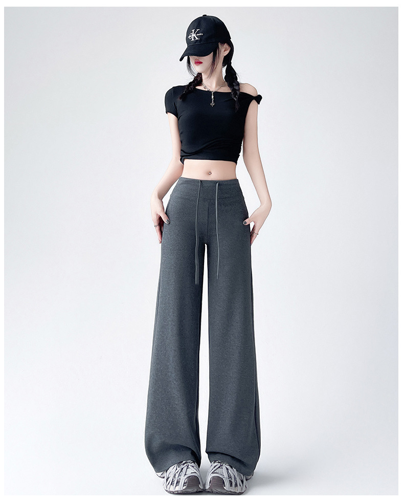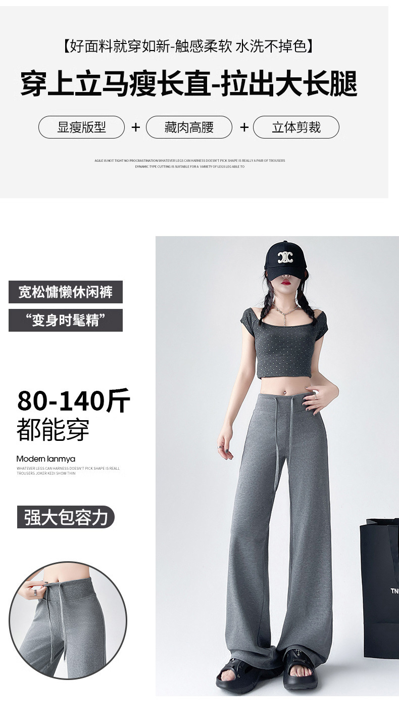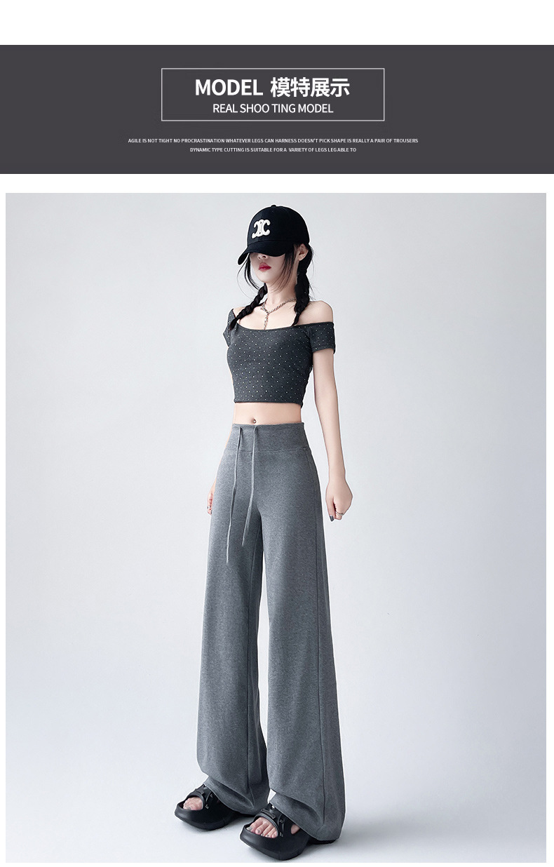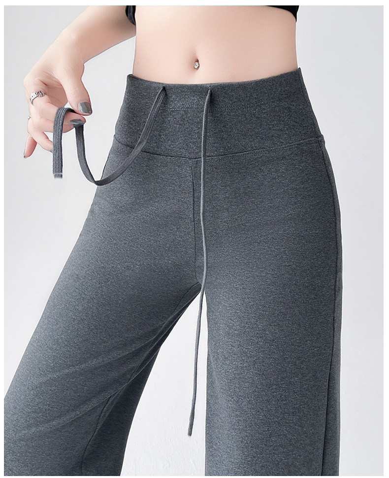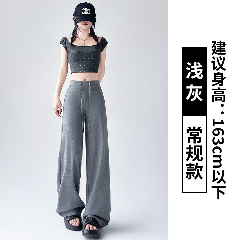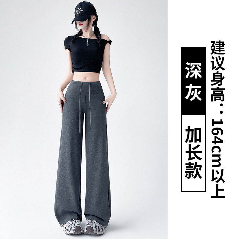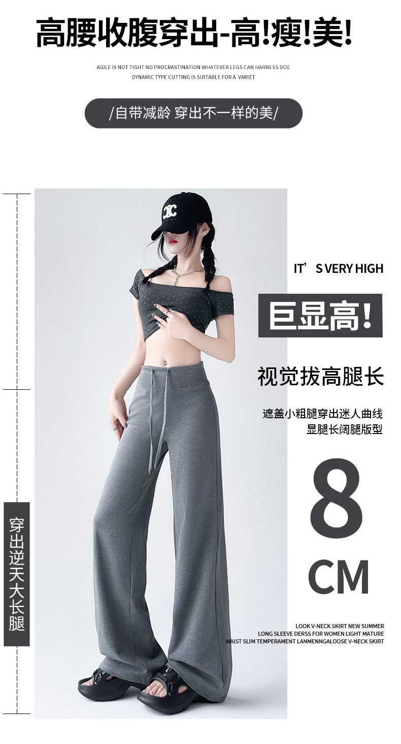 Весна и осень Новый стиль Спортивные штаны Женские воздушные хлопковые повседневные брюки Американские брюки с завязками Тонкие спортивные брюки с высокой талией и прямой драпировкой Широкие брюки