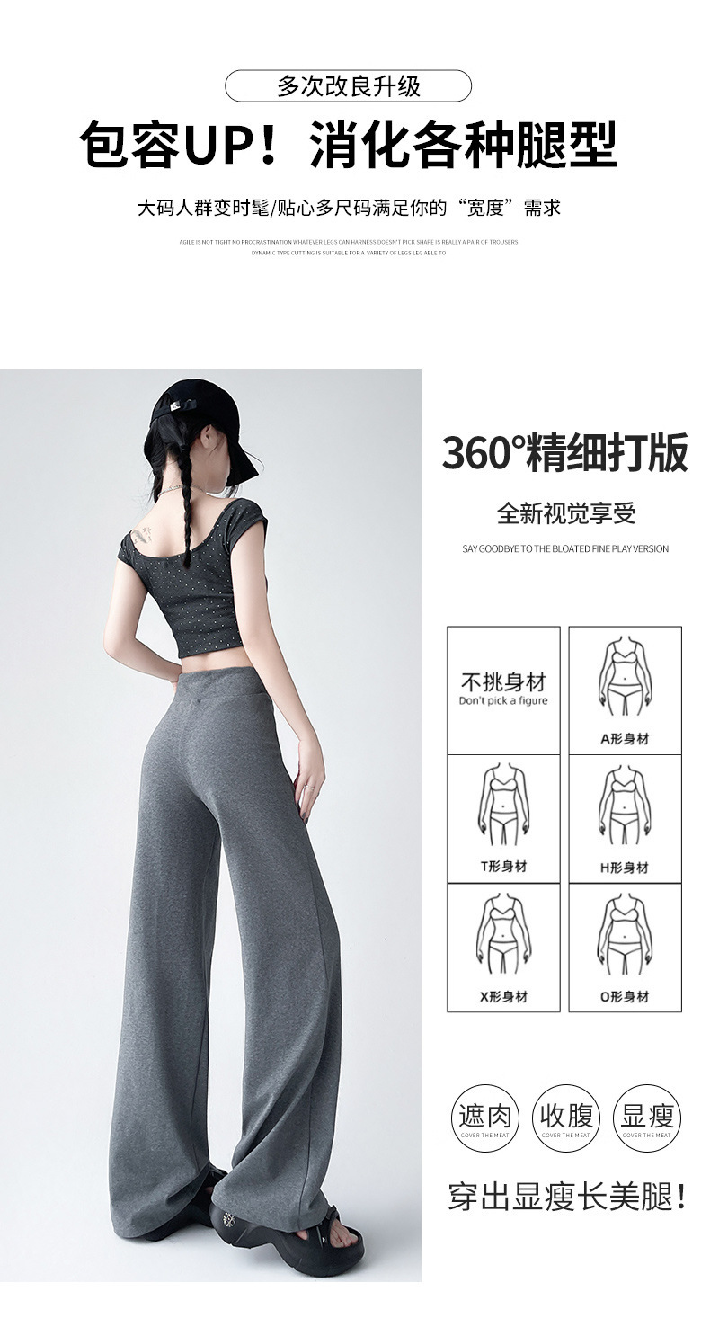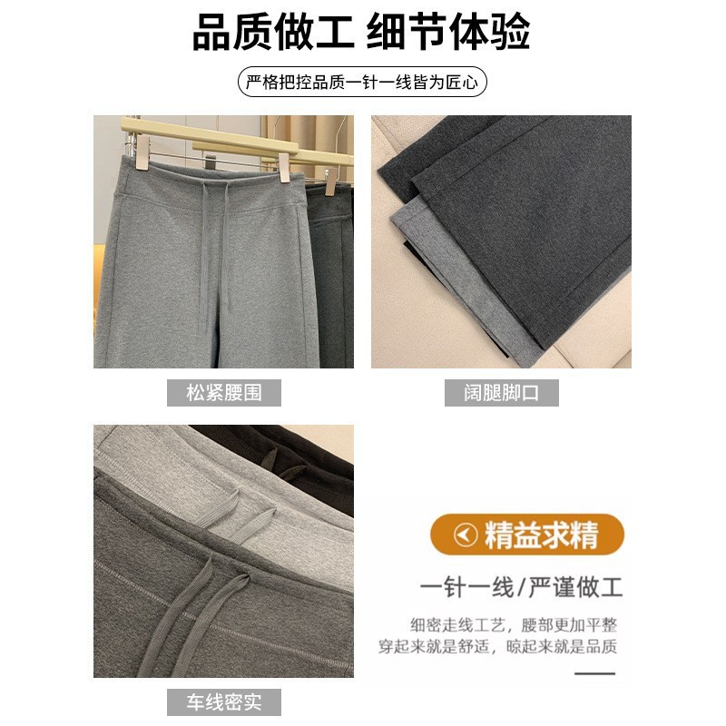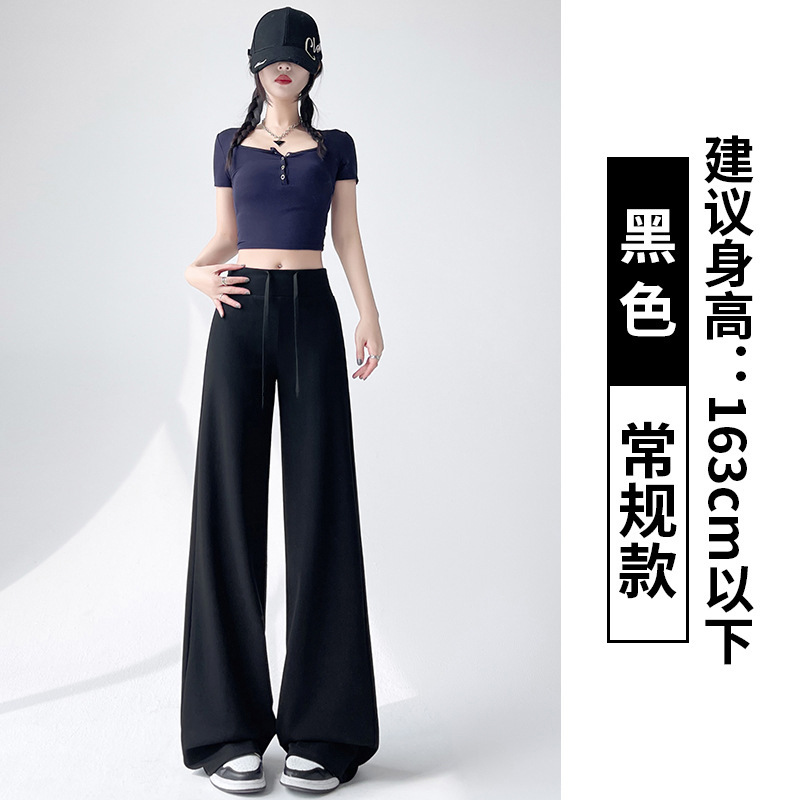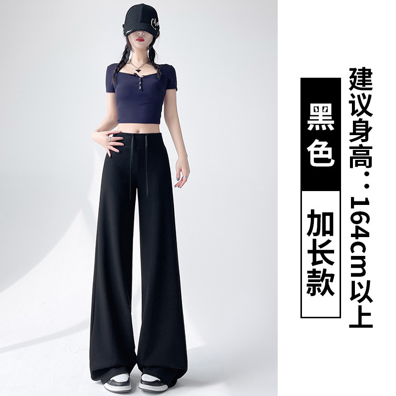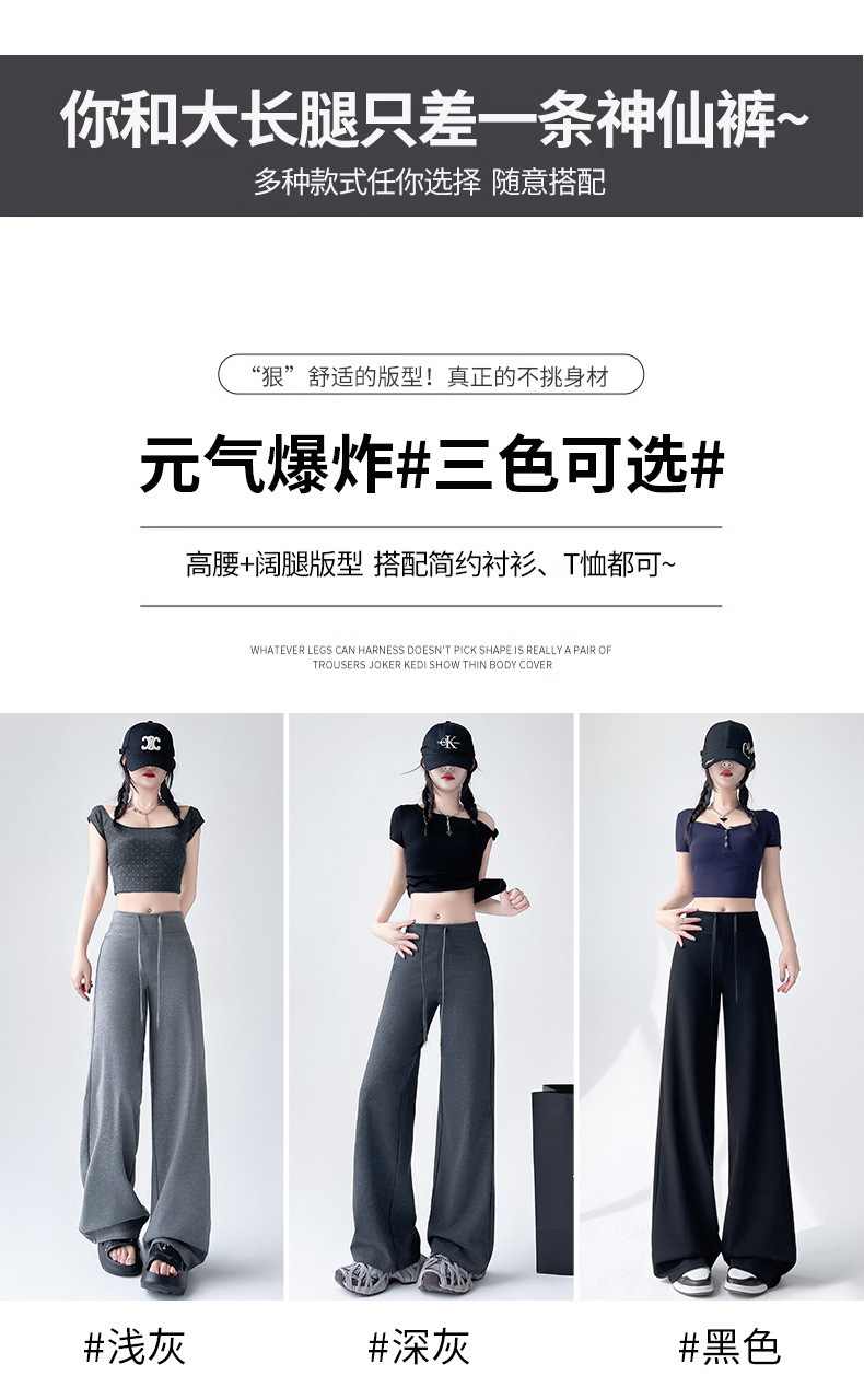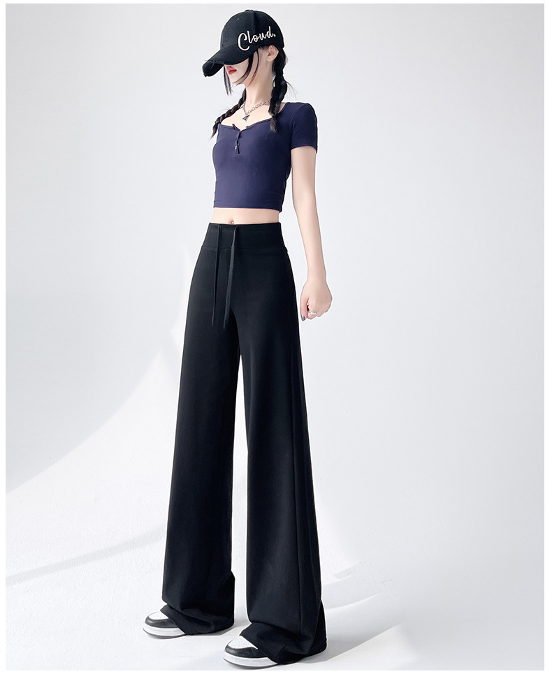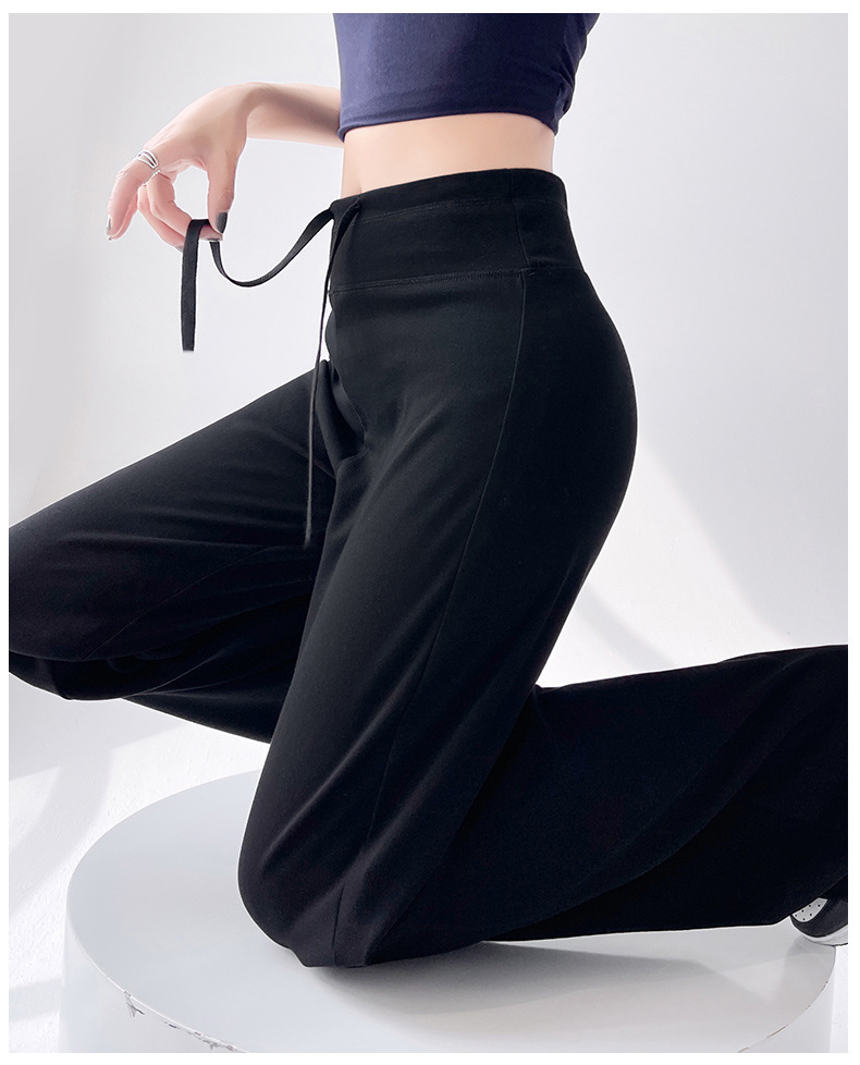 Весна и осень Новый стиль Спортивные штаны Женские воздушные хлопковые повседневные брюки Американские брюки с завязками Тонкие спортивные брюки с высокой талией и прямой драпировкой Широкие брюки