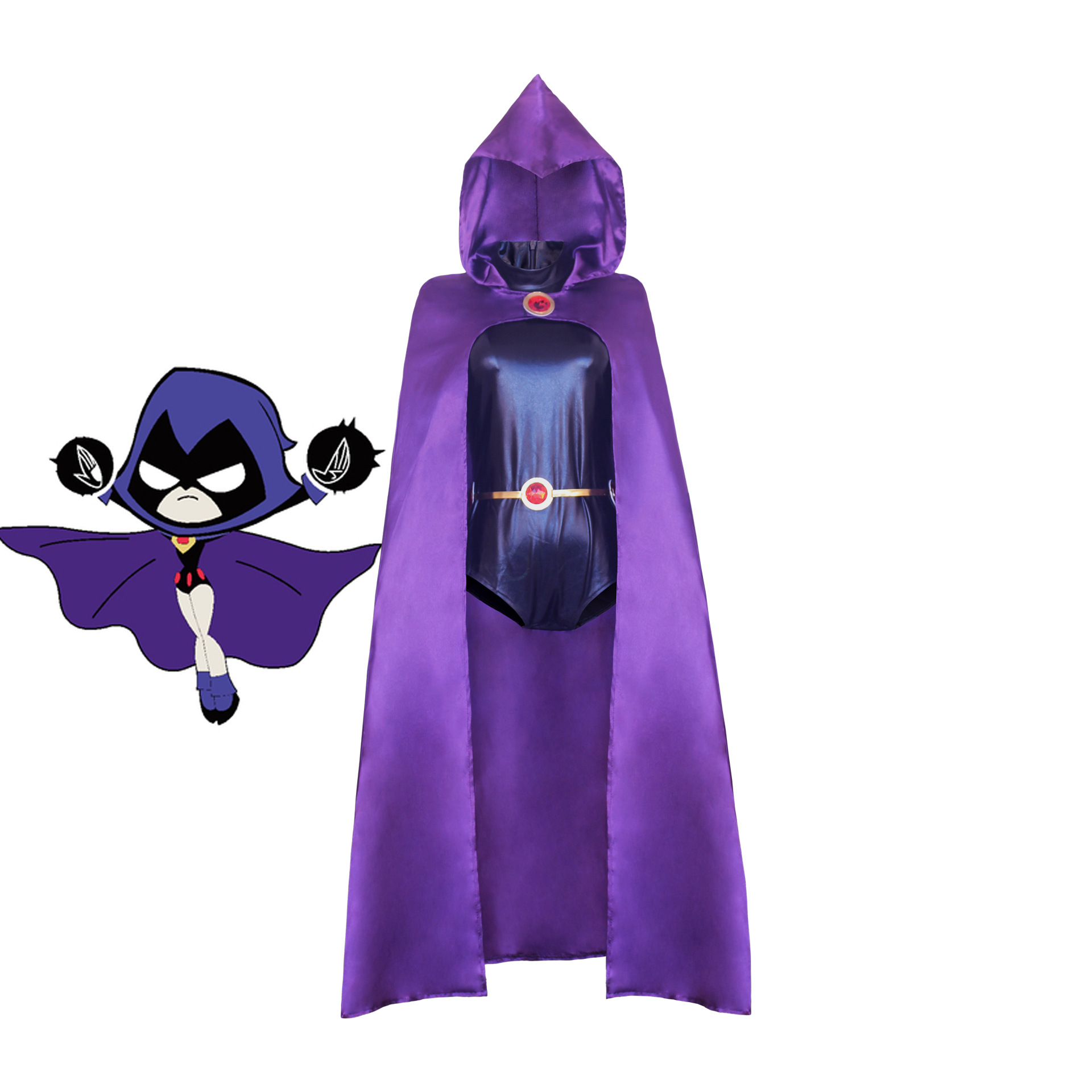 Костюм Ворона Teen Titans (плащ + комбинезон + цепочка с драгоценными камнями на талии + браслет); Teen Titans Raven (одинарная накидка)