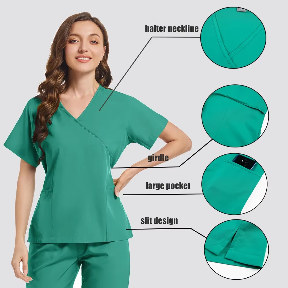 Одежда для мытья рук врача Amazon для внешней торговли, медицинская рабочая одежда, тонкая хирургическая одежда для операционной с короткими рукавами, дропшиппинг