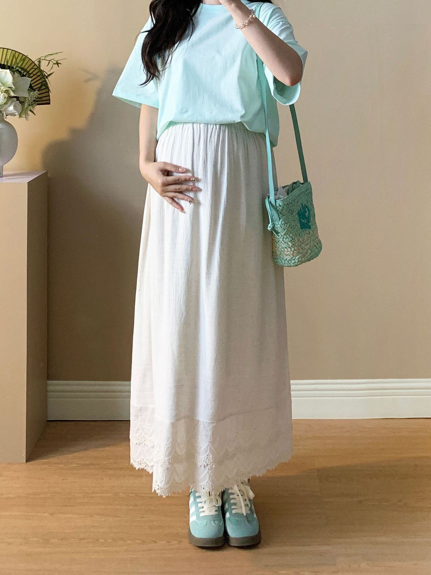 Летняя беременная женщина тонкая хлопчатобумажная юбка-полумная мода беременная женщина повседневная знаменитая темпераментная юбка