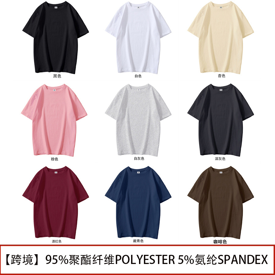 Трансграничный 95% полиэстер Polyester 5% спандекс SpandexTEMU сплошной цвет футболка с короткими рукавами с короткими рукавами
