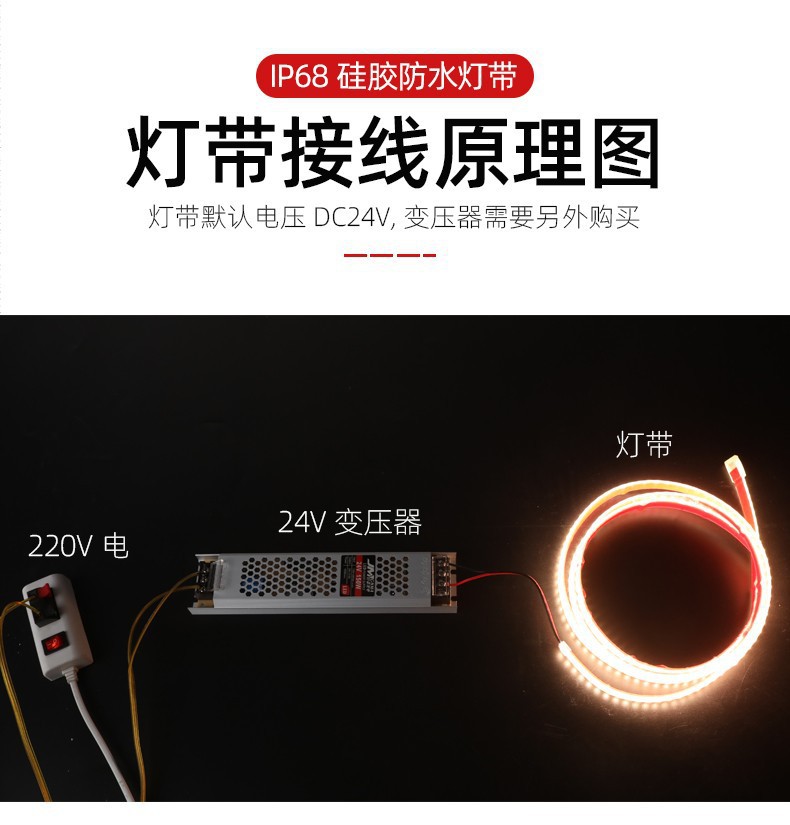 Низкое давление 24V наружная водонепроницаемая лампа с 120 лампами вклей IP68 с подклеем самоклеящаяся полоска может быть обрезана по желанию