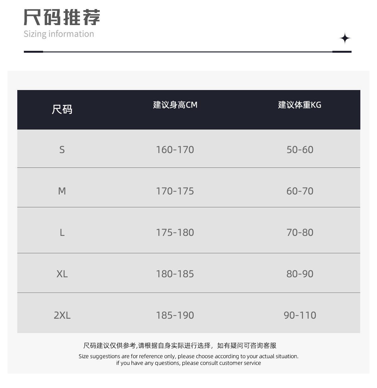 S; M; L; XL; 2XL; 3XL; 4XL; 5XL