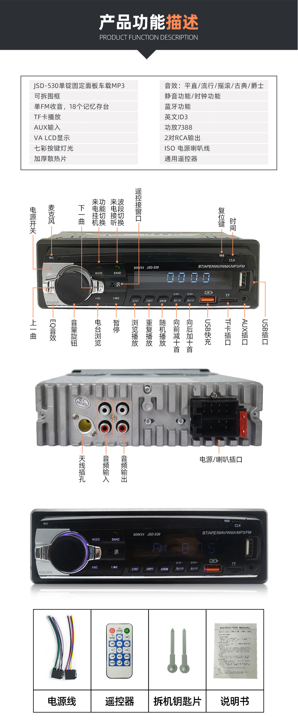 Лидер продаж JSD-520 интеллектуальный голосовой автомобильный MP3 Bluetooth-плеер карта FM-радио вместо CD