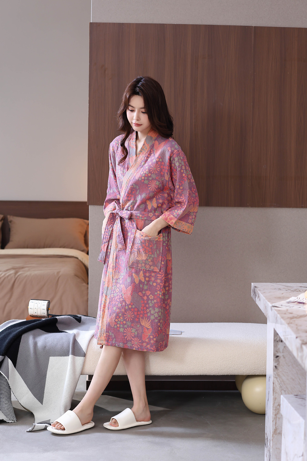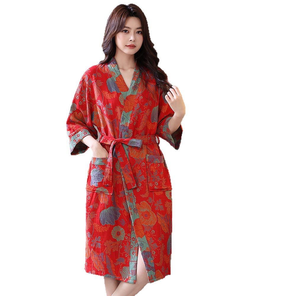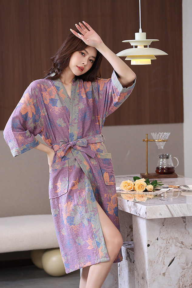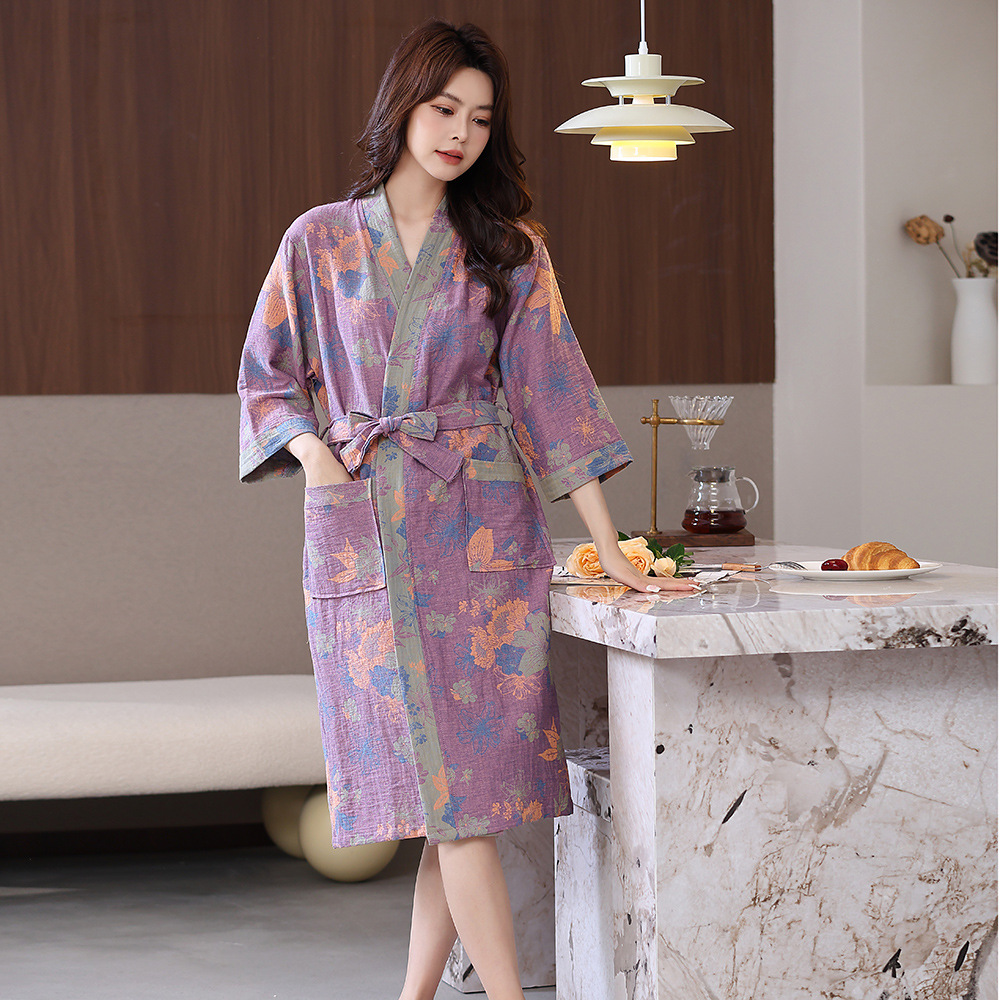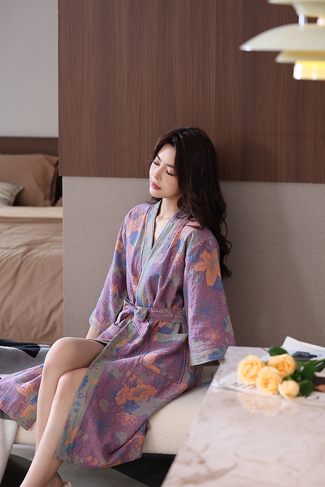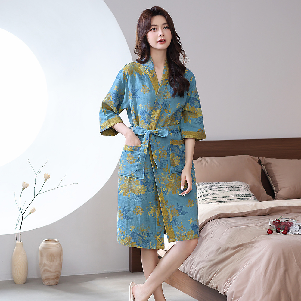 Весенний и летний тонкий хлопковый двухслойный марлевые халаты