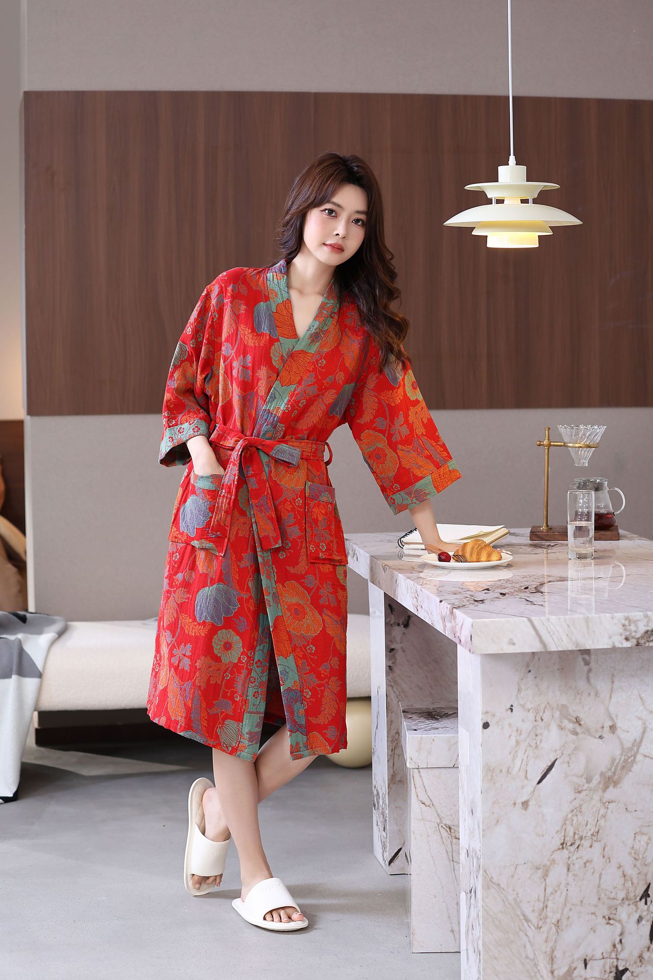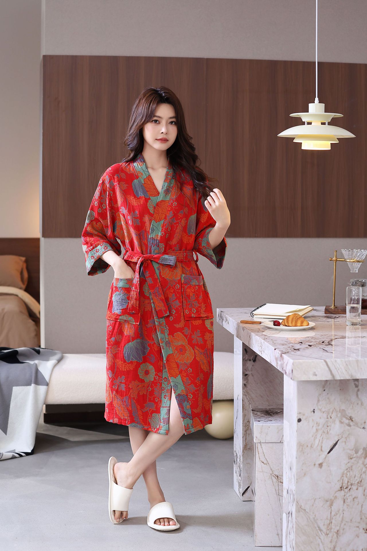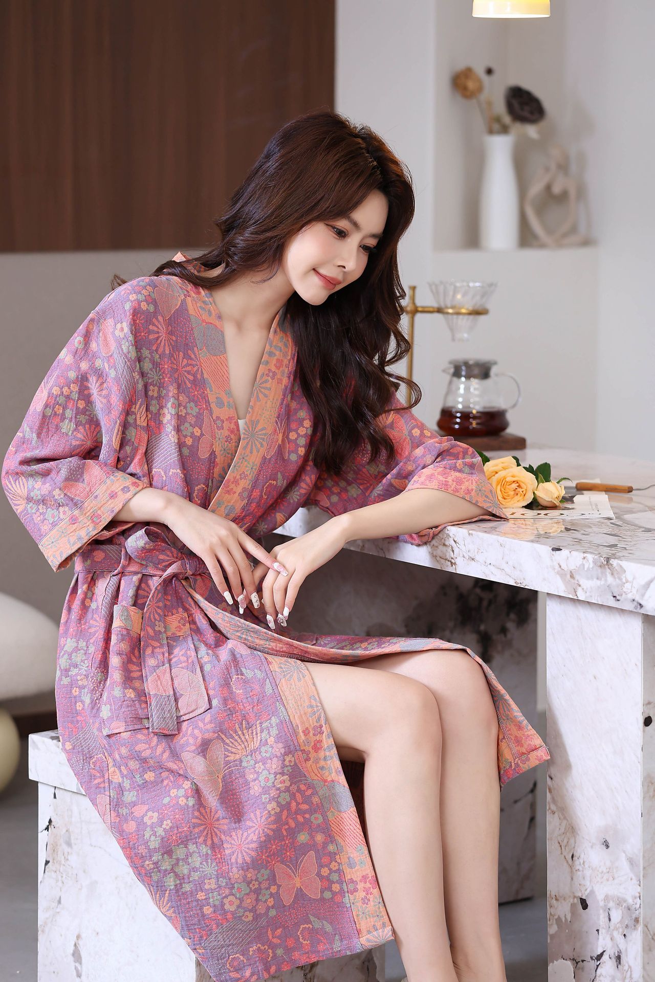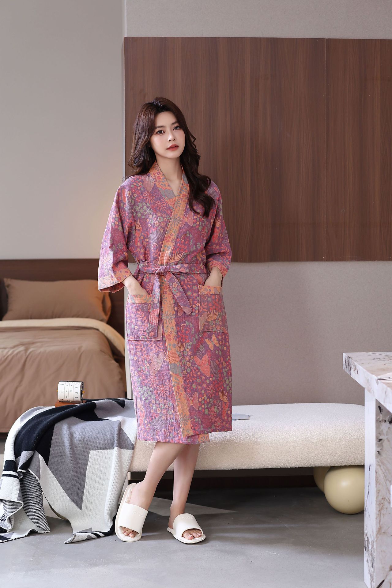 Весенний и летний тонкий хлопковый двухслойный марлевые халаты