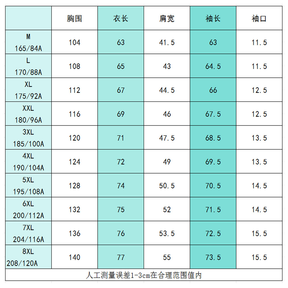 M; L; XL; XXL; 3XL; 4XL; 5XL; 6XL; 7XL; 8XL