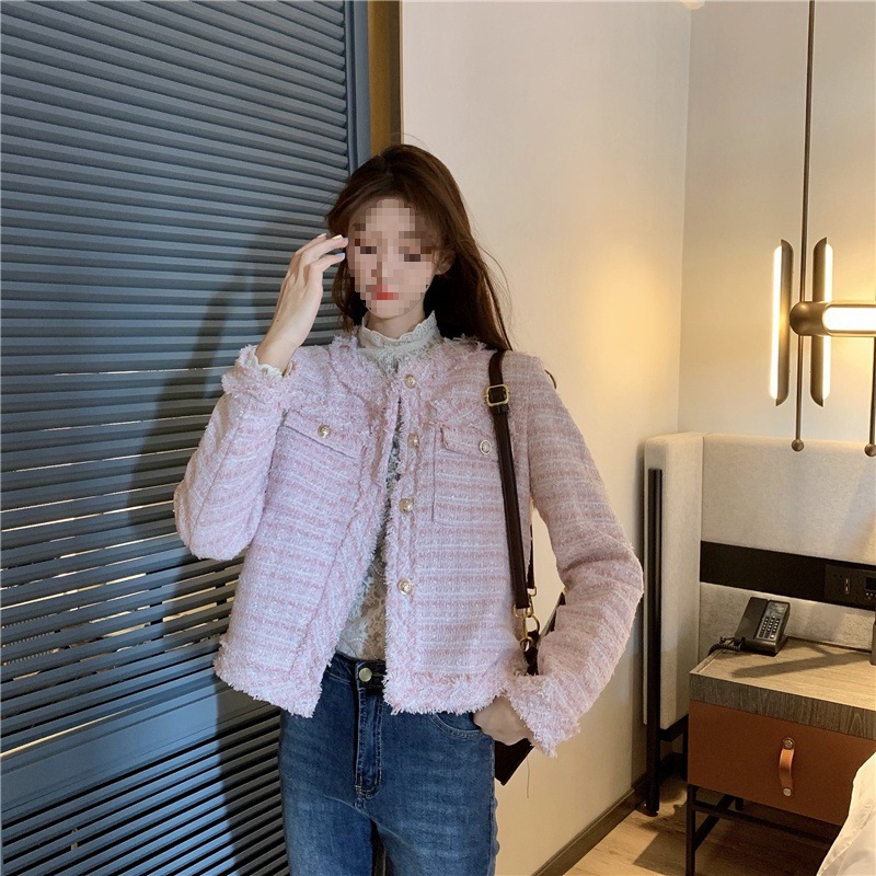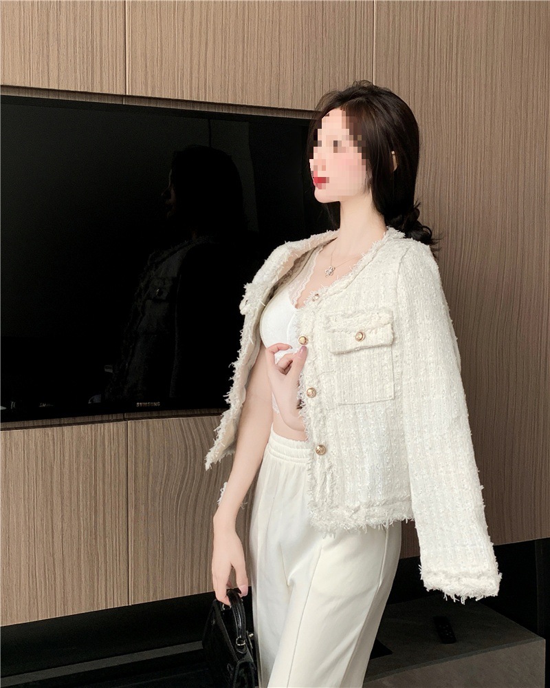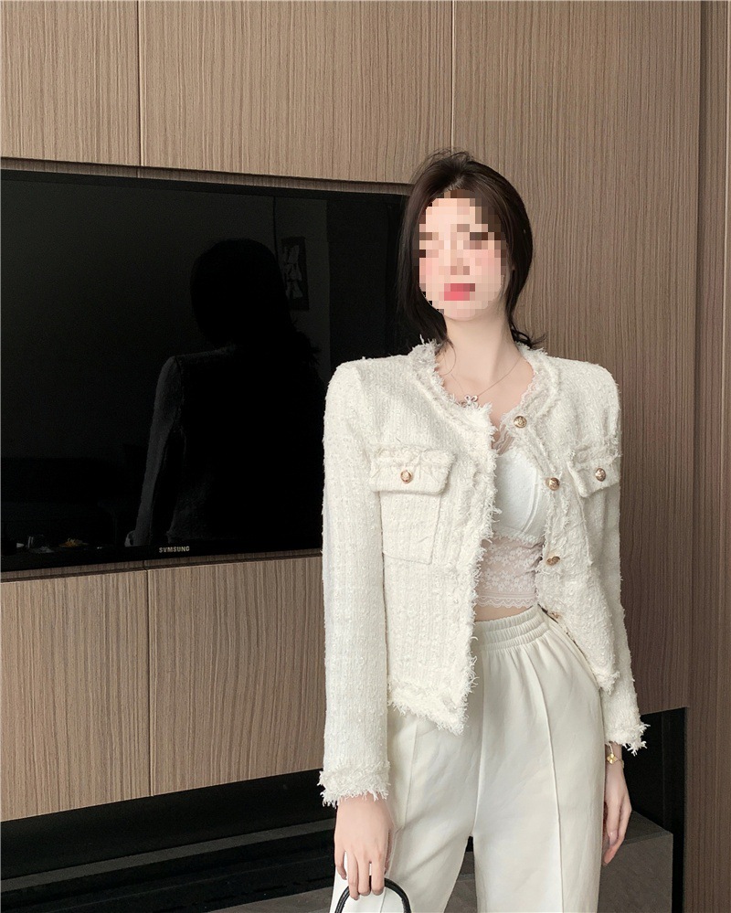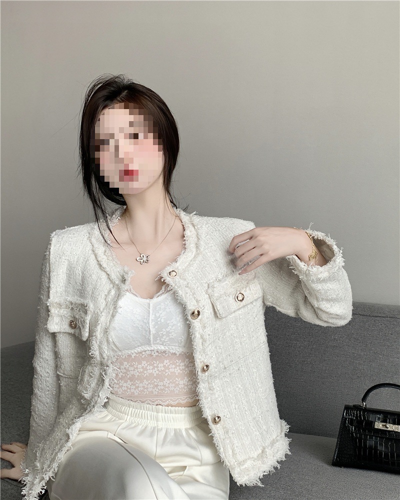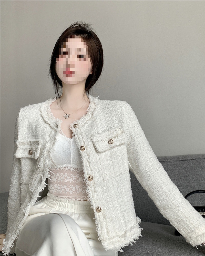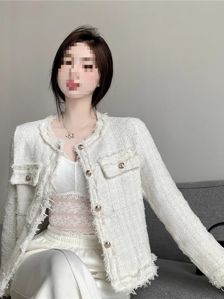 2025 новая светская маленькая ароматная однослойная куртка внешнеторговый оптовый производитель грубого текстиля из твидовой бахромы через границу