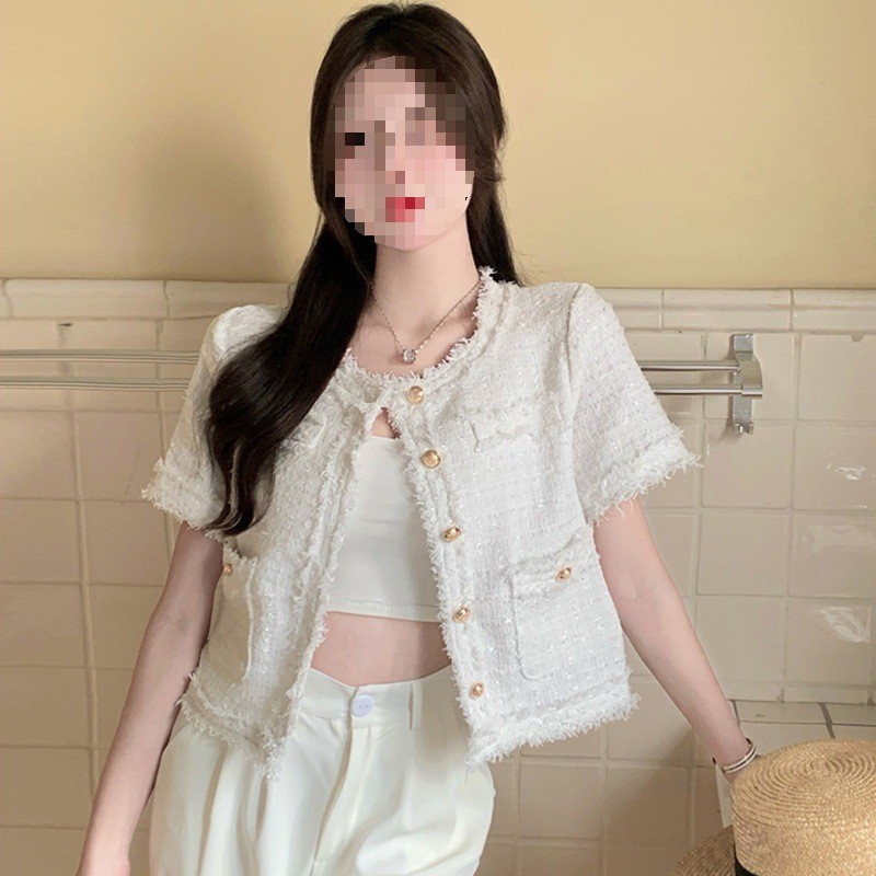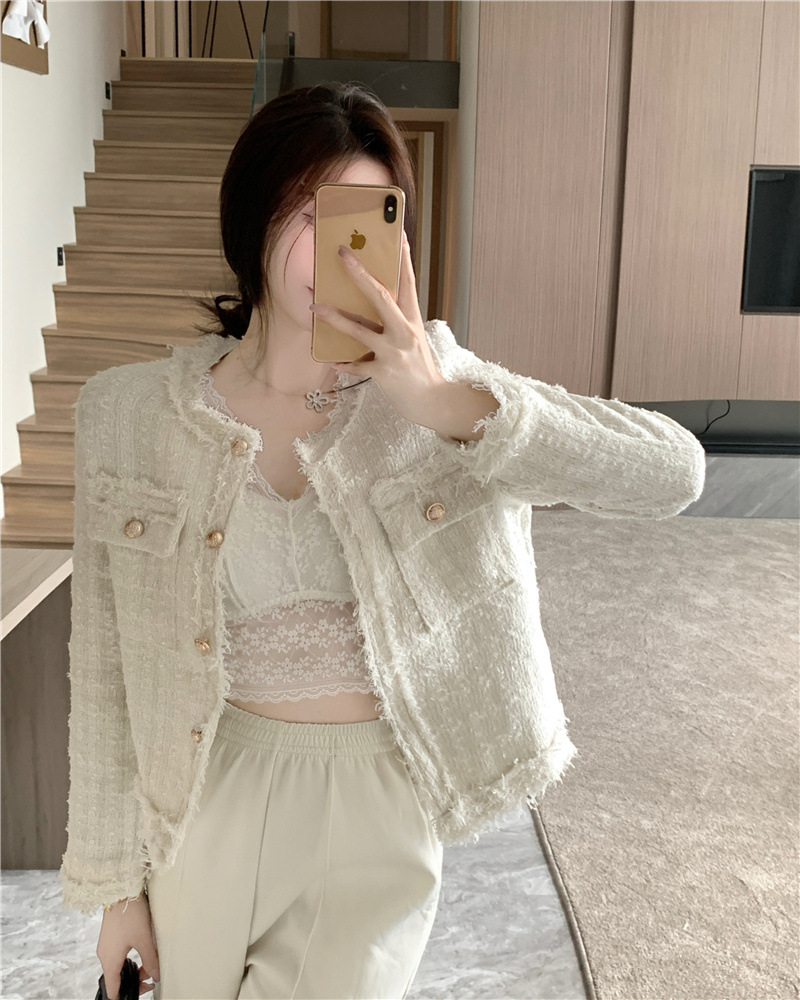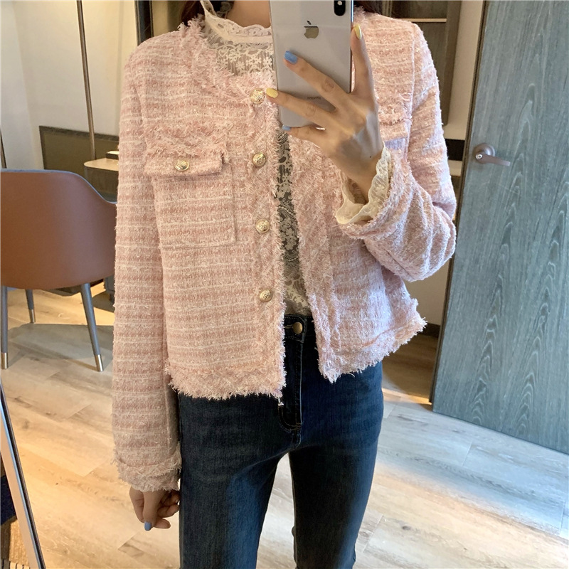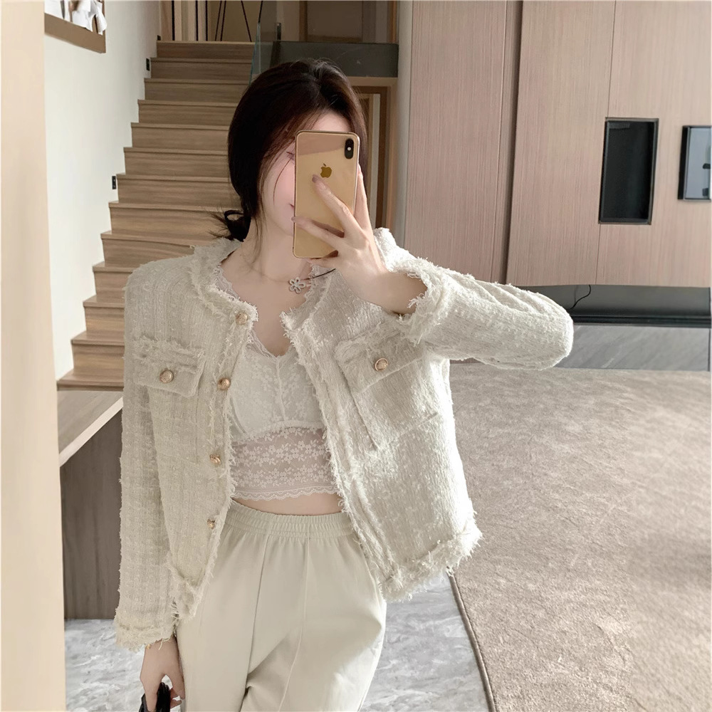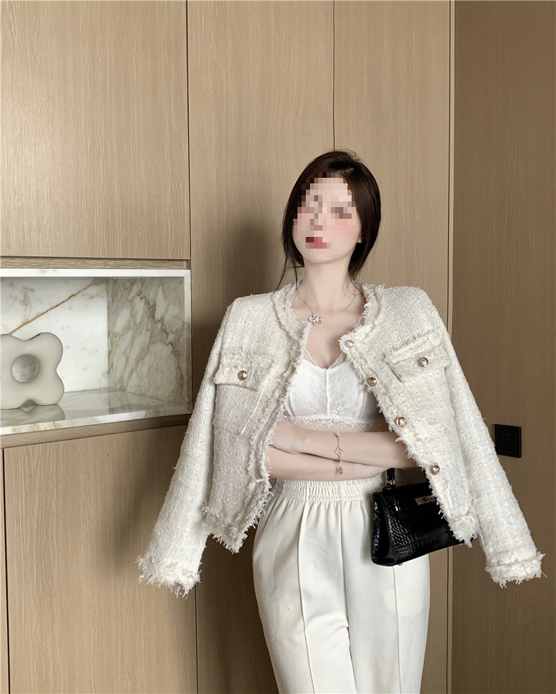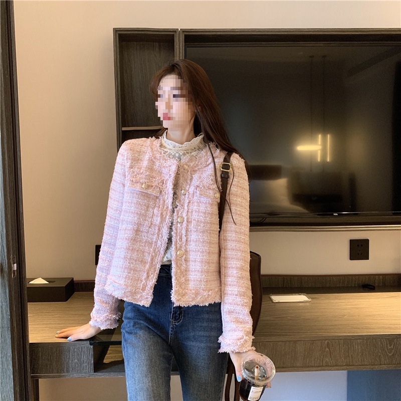 2025 новая светская маленькая ароматная однослойная куртка внешнеторговый оптовый производитель грубого текстиля из твидовой бахромы через границу