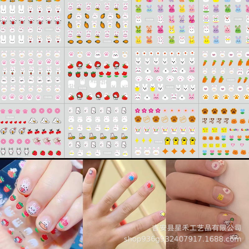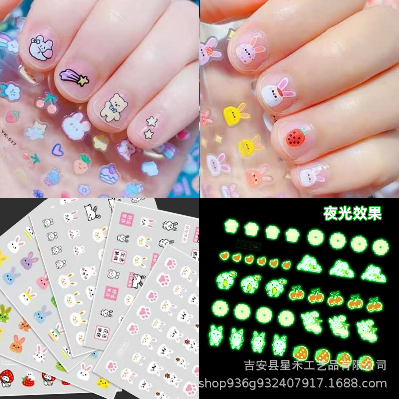 Взрыв светящийся ребенок милый и очаровательный кролик ногти наклейки для девочек детский сад бонусные наклейки для ногтей наклейки