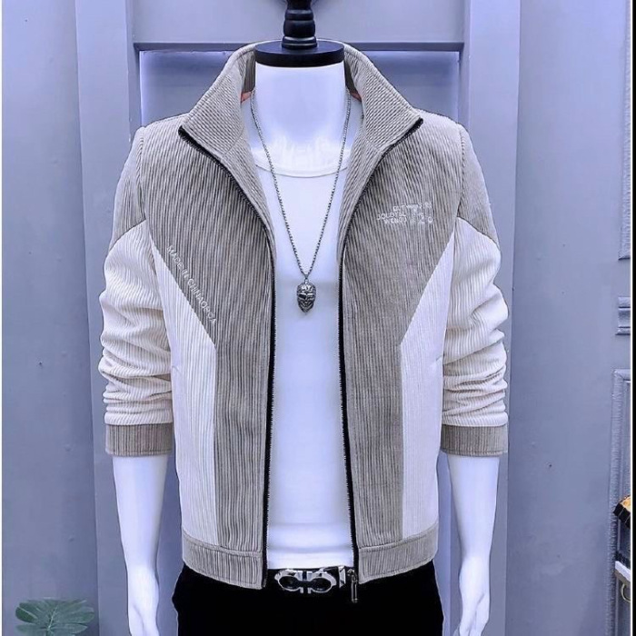 Новая весенне-осенняя куртка в корейском стиле, облегающая куртка с воротником-стойкой, утолщенная вельветовая куртка, мужская модная повседневная мужская куртка