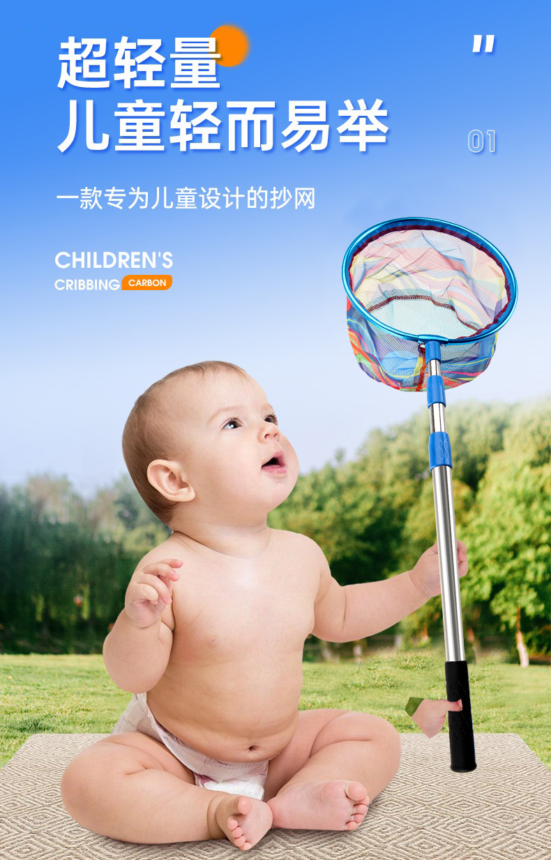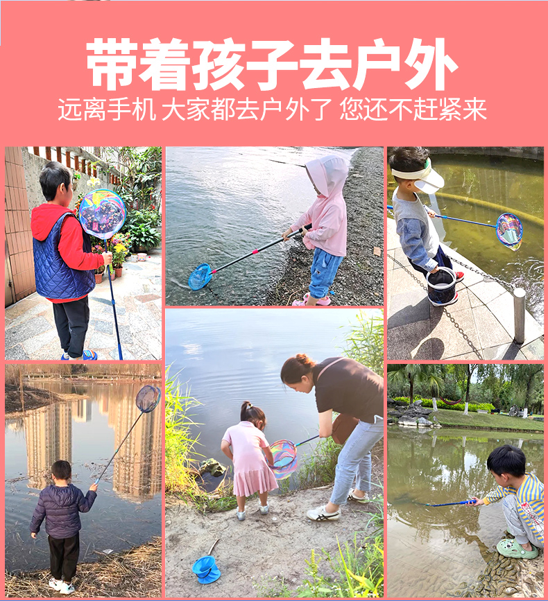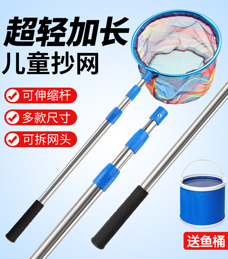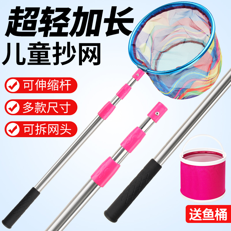 Детская выдвижная удочка для ловли мелкой рыбы и креветок, утолщенная рыболовная сеть с портативной телескопической сетчатой сумкой.