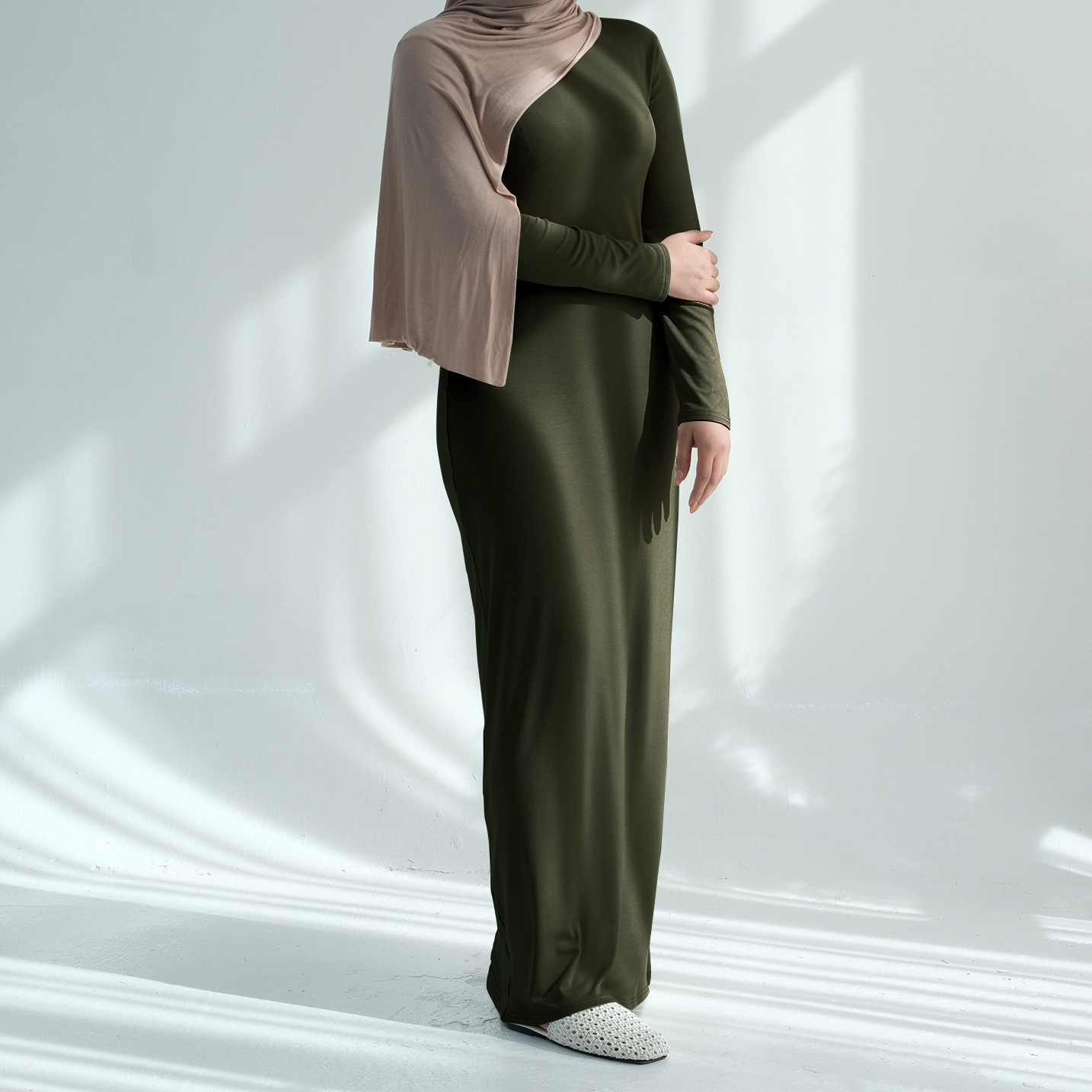 Loriya2025速卖通亚马逊中东土耳其迪拜纯色莫代尔棉连衣裙LR933Jersy cotton dress
