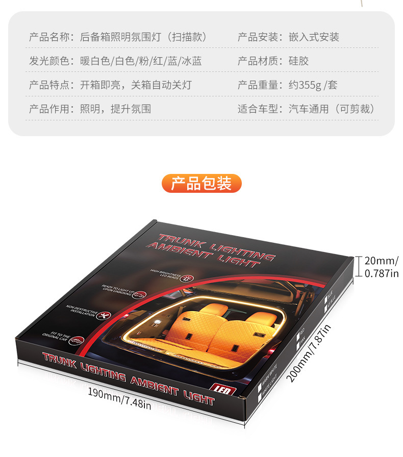 Универсальный штырь Багажник Лампа неразрушающего заряда светодиодная атмосферная лампа подходит для 99% автомобиля багажник лампа со сканированием
