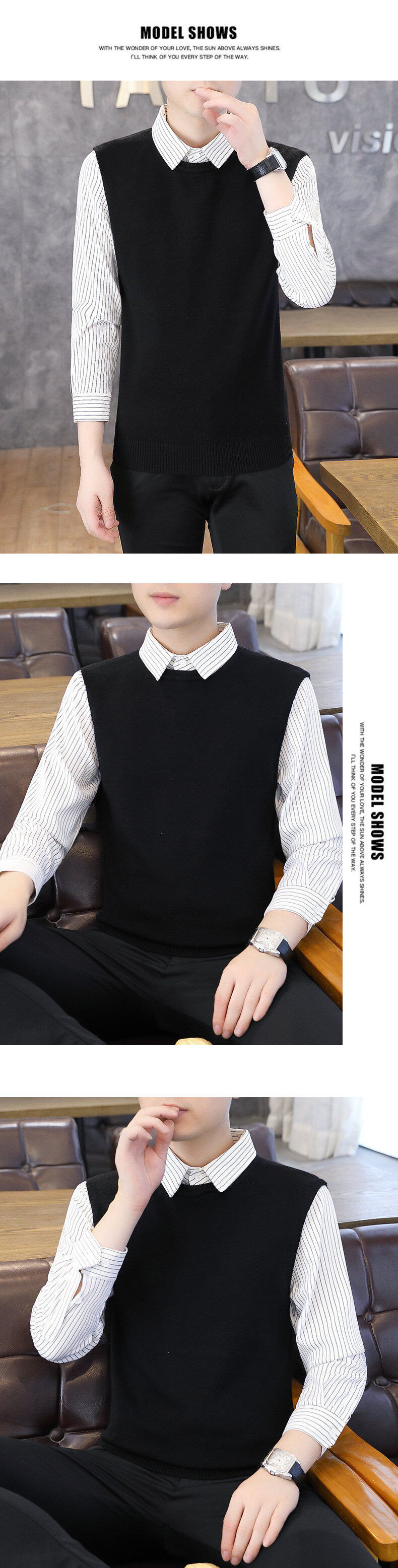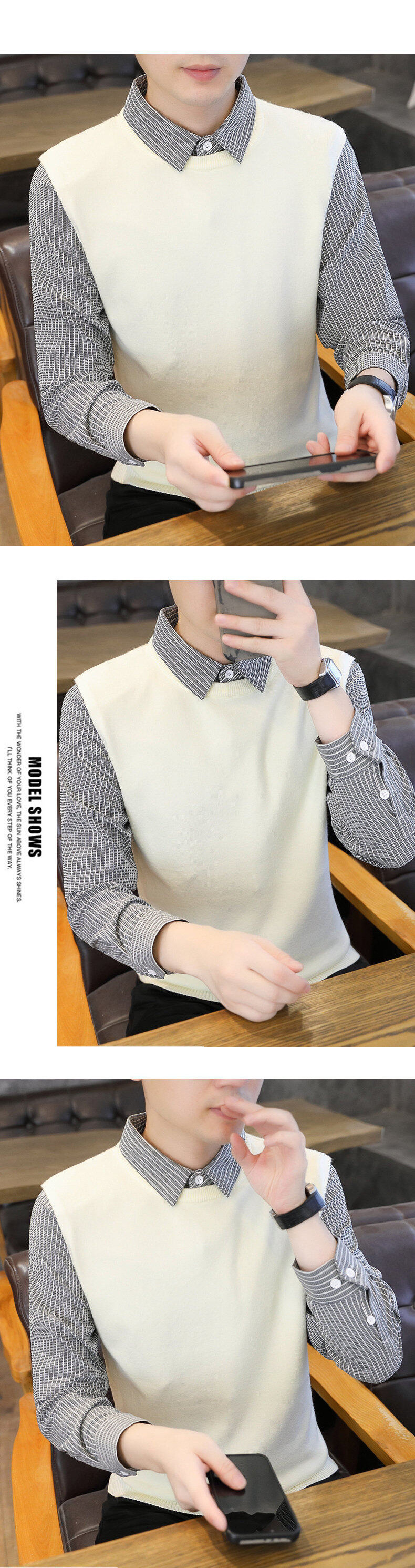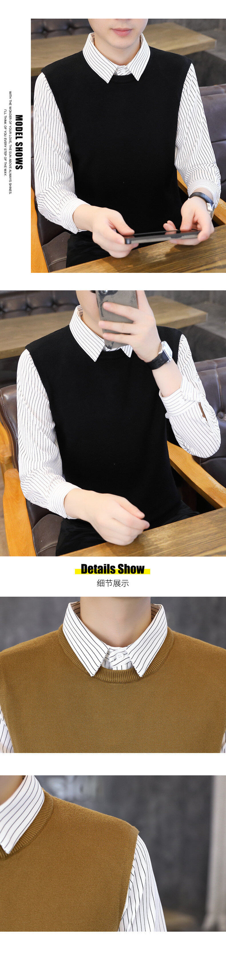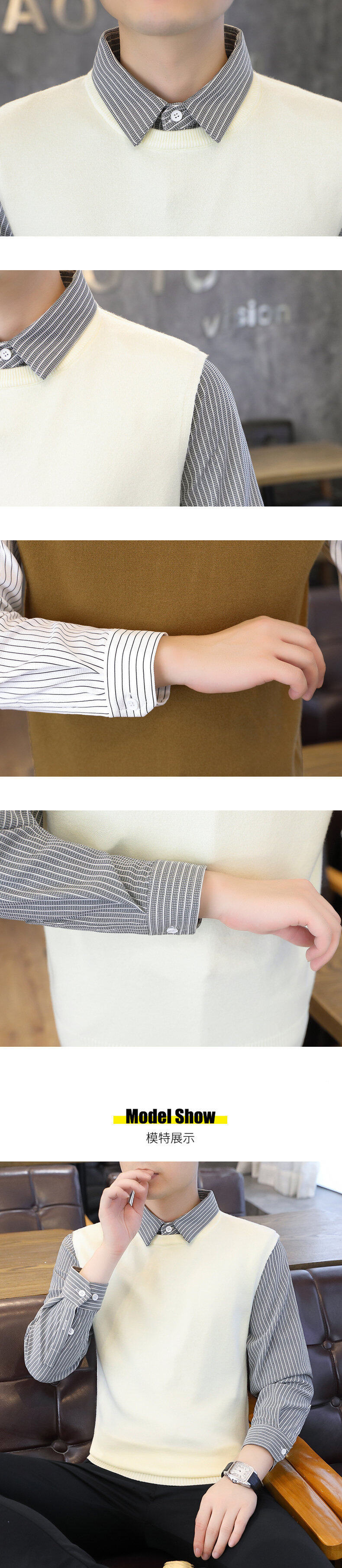 Новый осенне-зимний свитер из двух частей нулевого размера, мужская рубашка с воротником, трикотажная рубашка с низом.