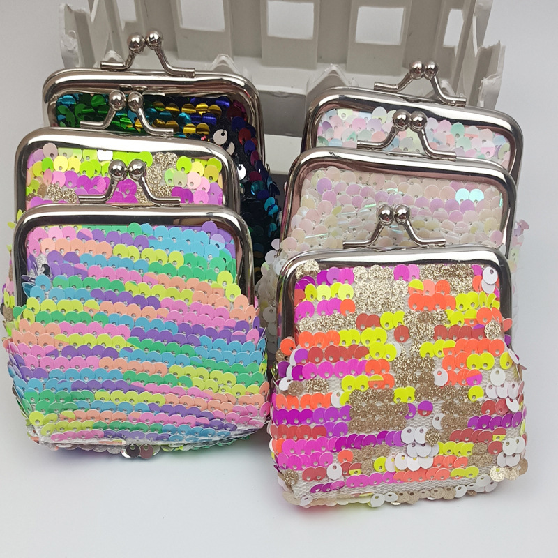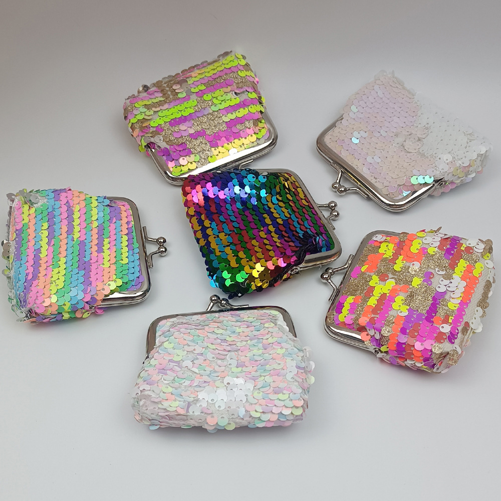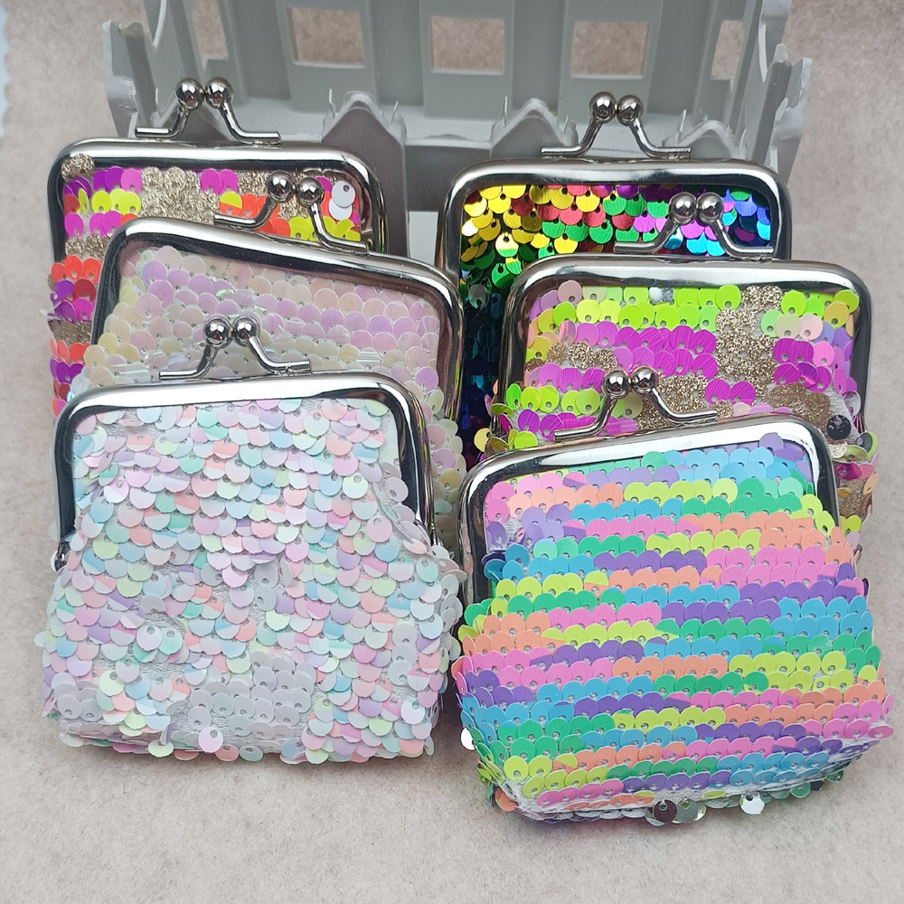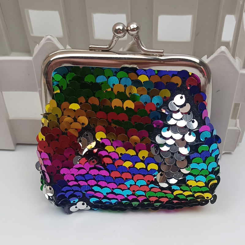 Новый 3inch Двусторонний кошелек для монет с радужными блестками, сумка для хранения монет, сумка с зажимом с железной пряжкой, сумка с симфоническими рыбными чипсами