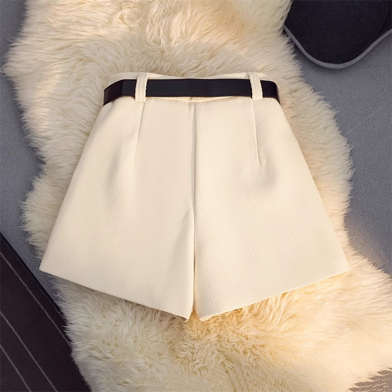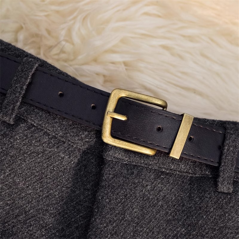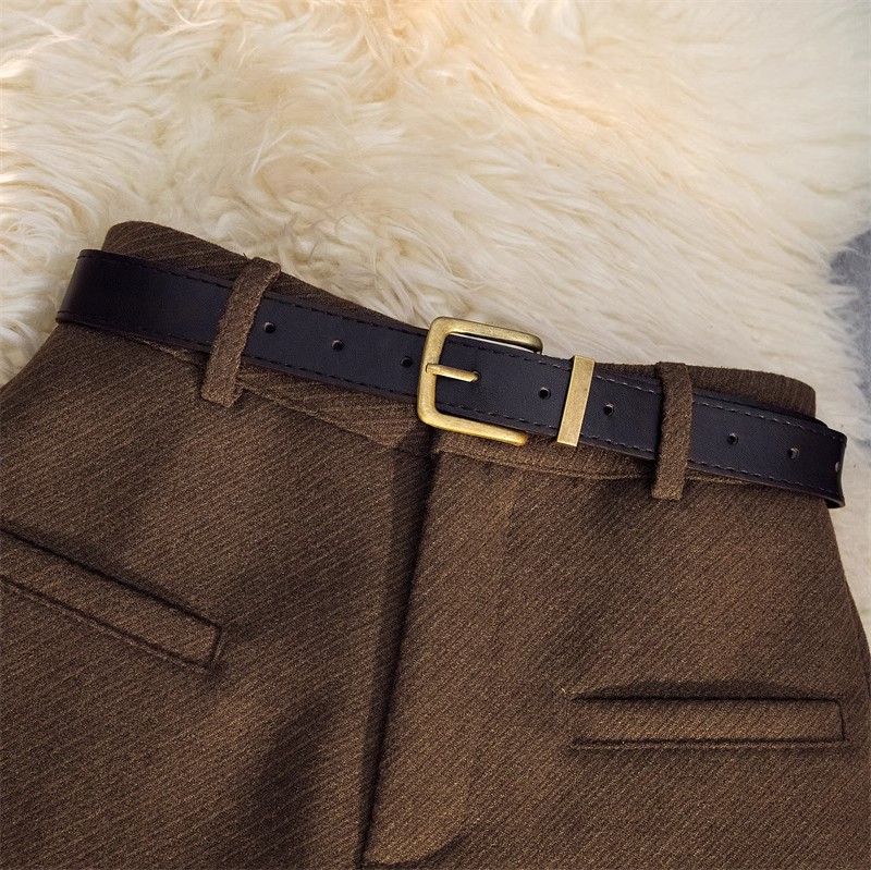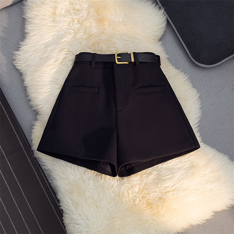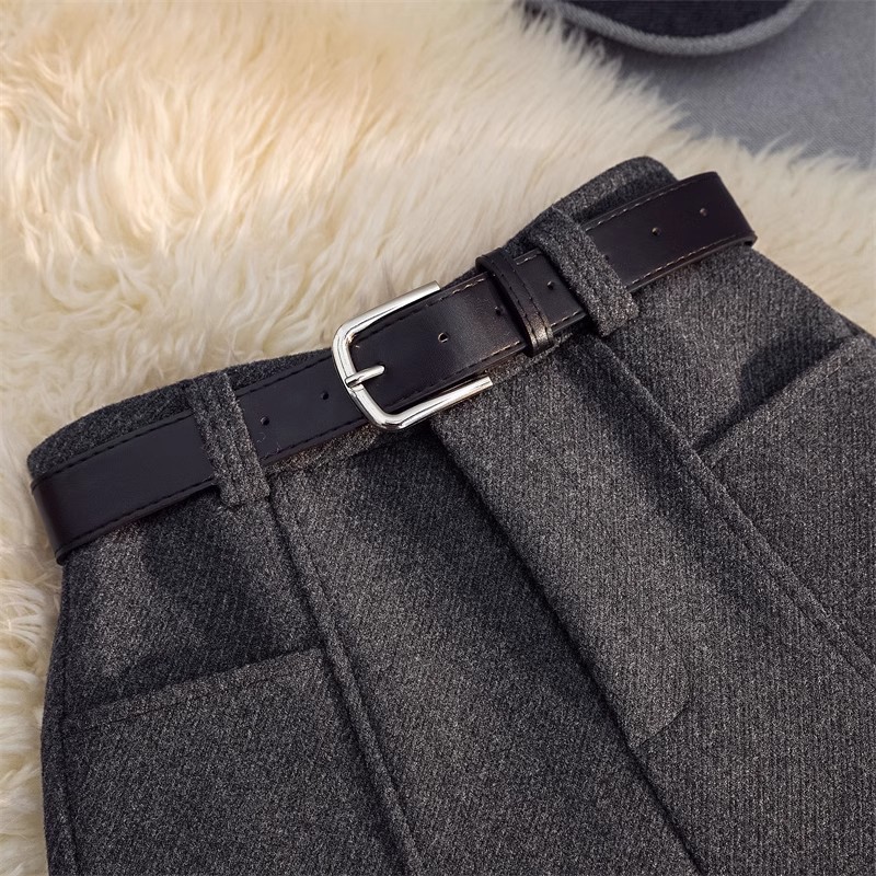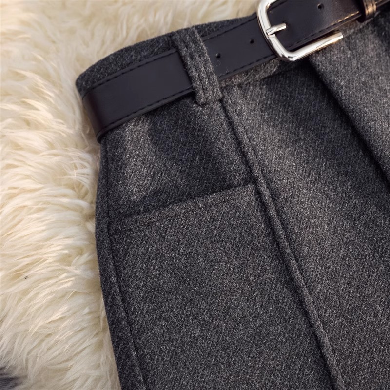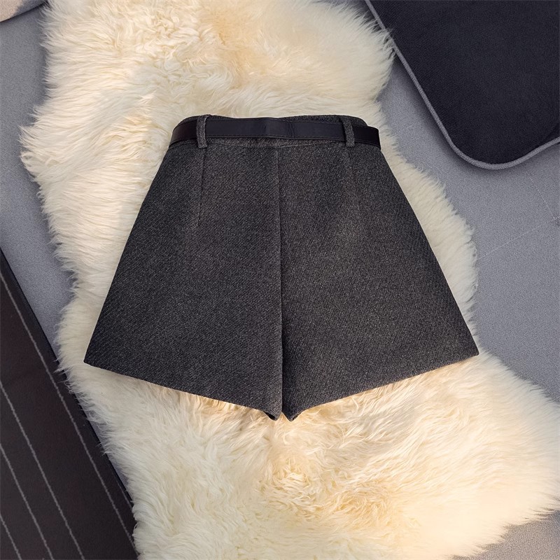 Женские шерстяные шорты для маленьких людей, осенне-зимние серые брюки-ботинки с высокой талией 2024 года, универсальные утягивающие широкие брюки А-силуэта.