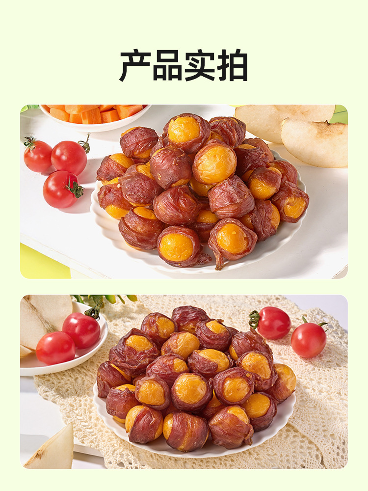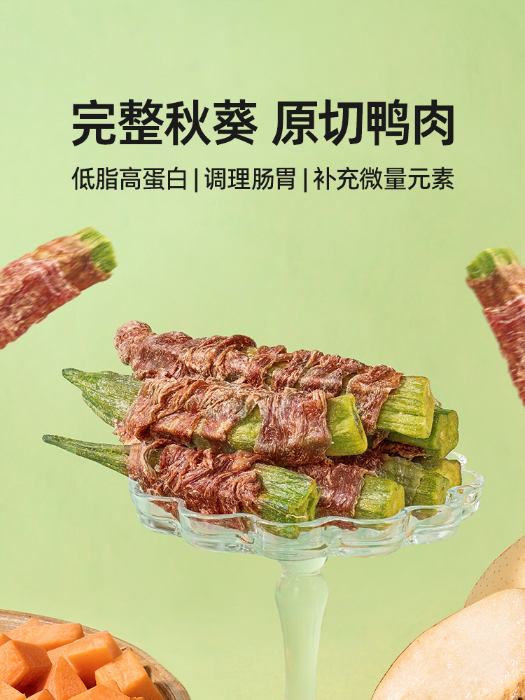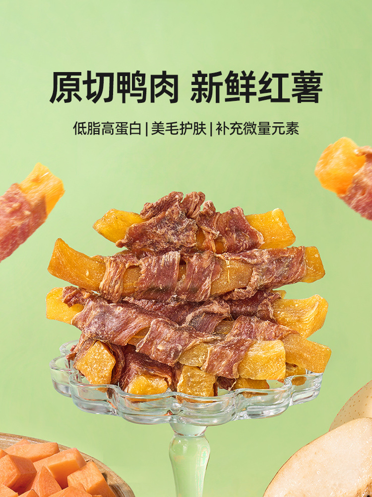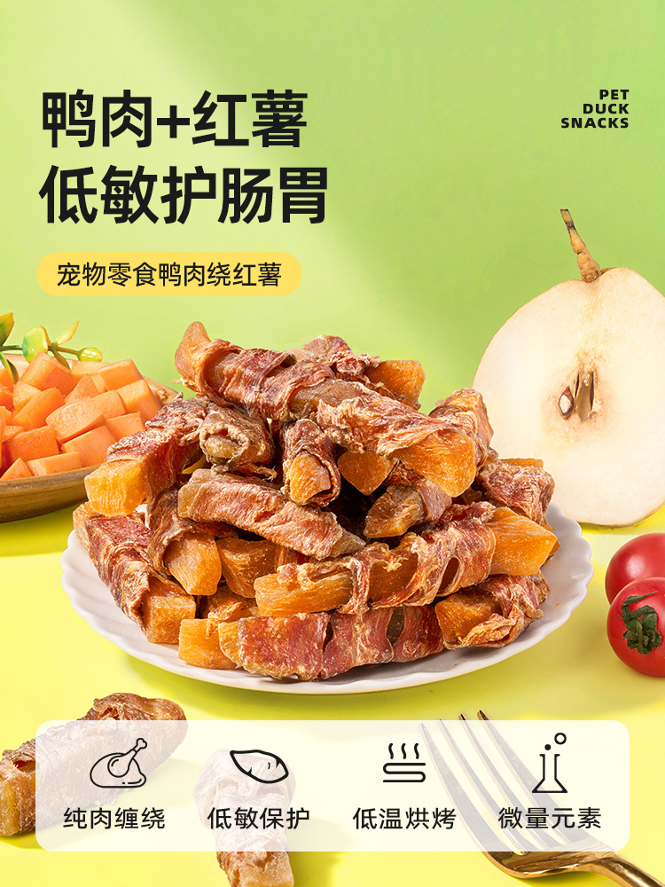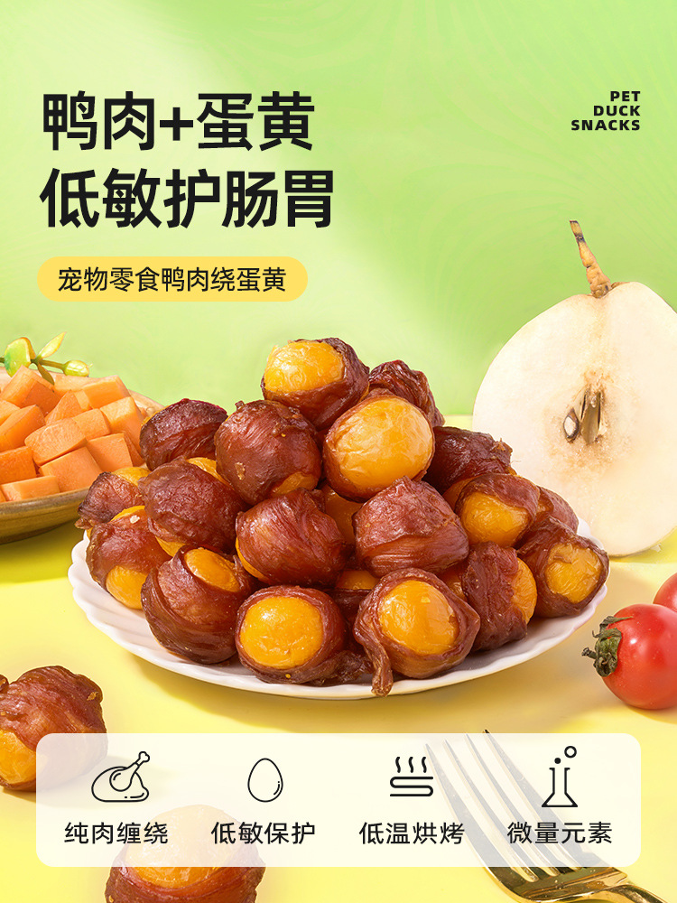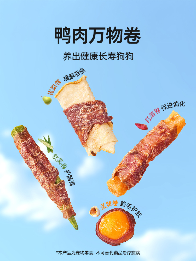 [Прозрачные пятна от огня и слез] Рулеты из утиного мяса и снежной груши 100г; [Защита кишечника и слабительное] Рулеты из утки и бамии 100г; [Красота волос Цинхуо] Утиное мясо, обернутое яичным желтком, 100 г; [Помогает пищеварению] Рулеты из утки и сладкого картофеля 100г