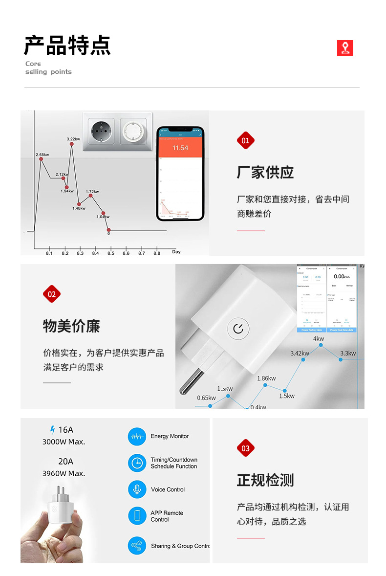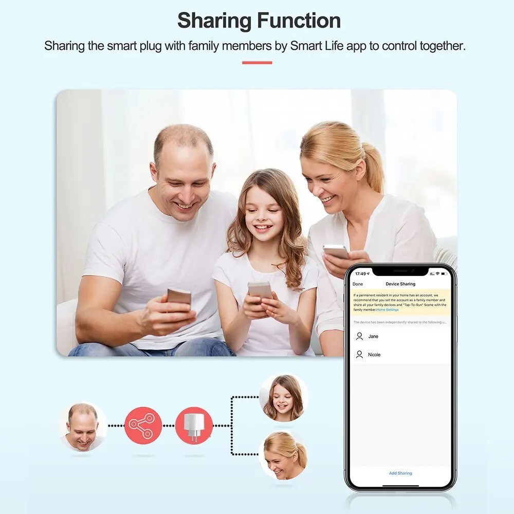 Умная розетка Tuya WiFi с голосовым управлением, беспроводной пульт дистанционного управления для мобильного телефона, вилка европейского стандарта, частная модель, 16А, обнаружение мощности.
