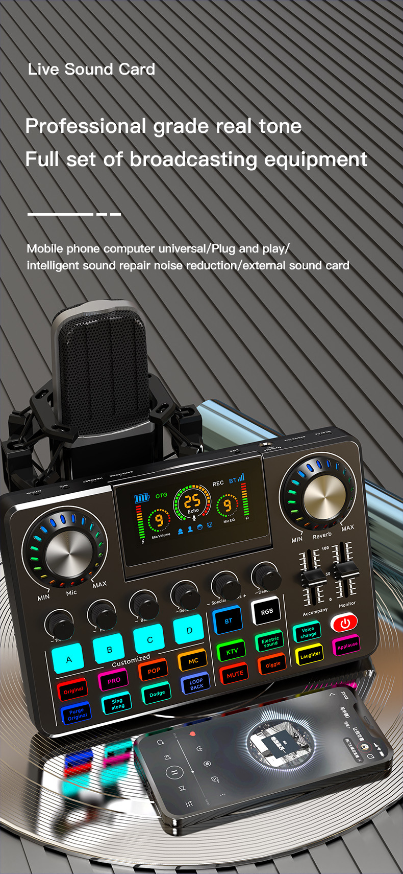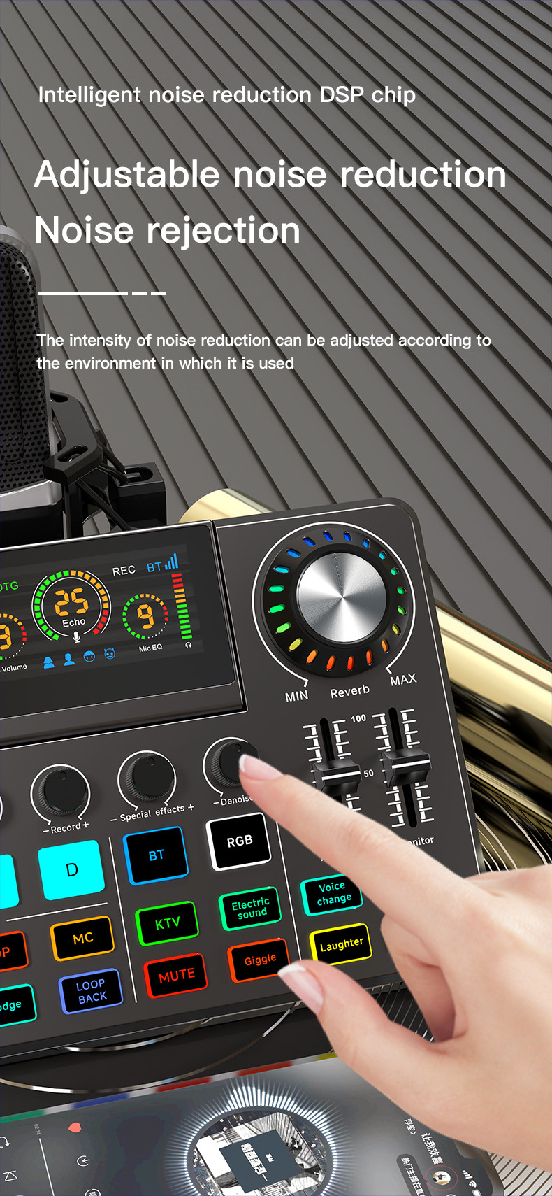 Живая звуковая карта, микшер, компьютерная запись, пение, шумоподавление