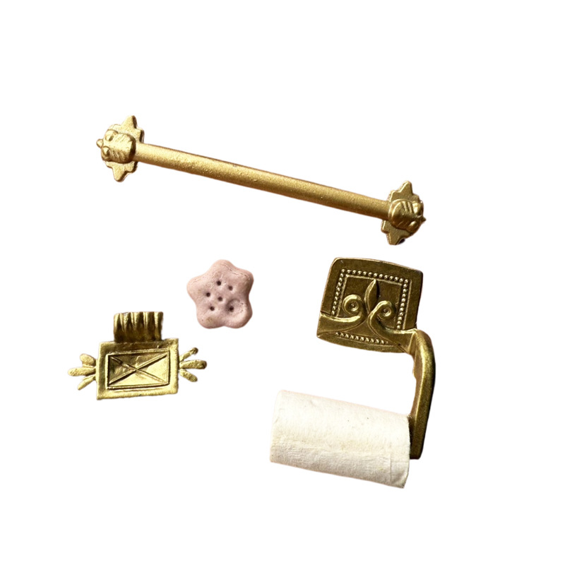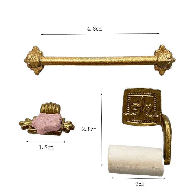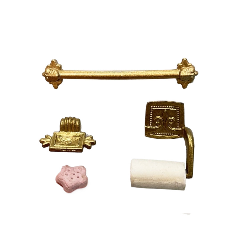 卫生间浴室配件4件套,有毛巾架,卷纸架,香皂盘和迷你小香皂,4个一组重8g。