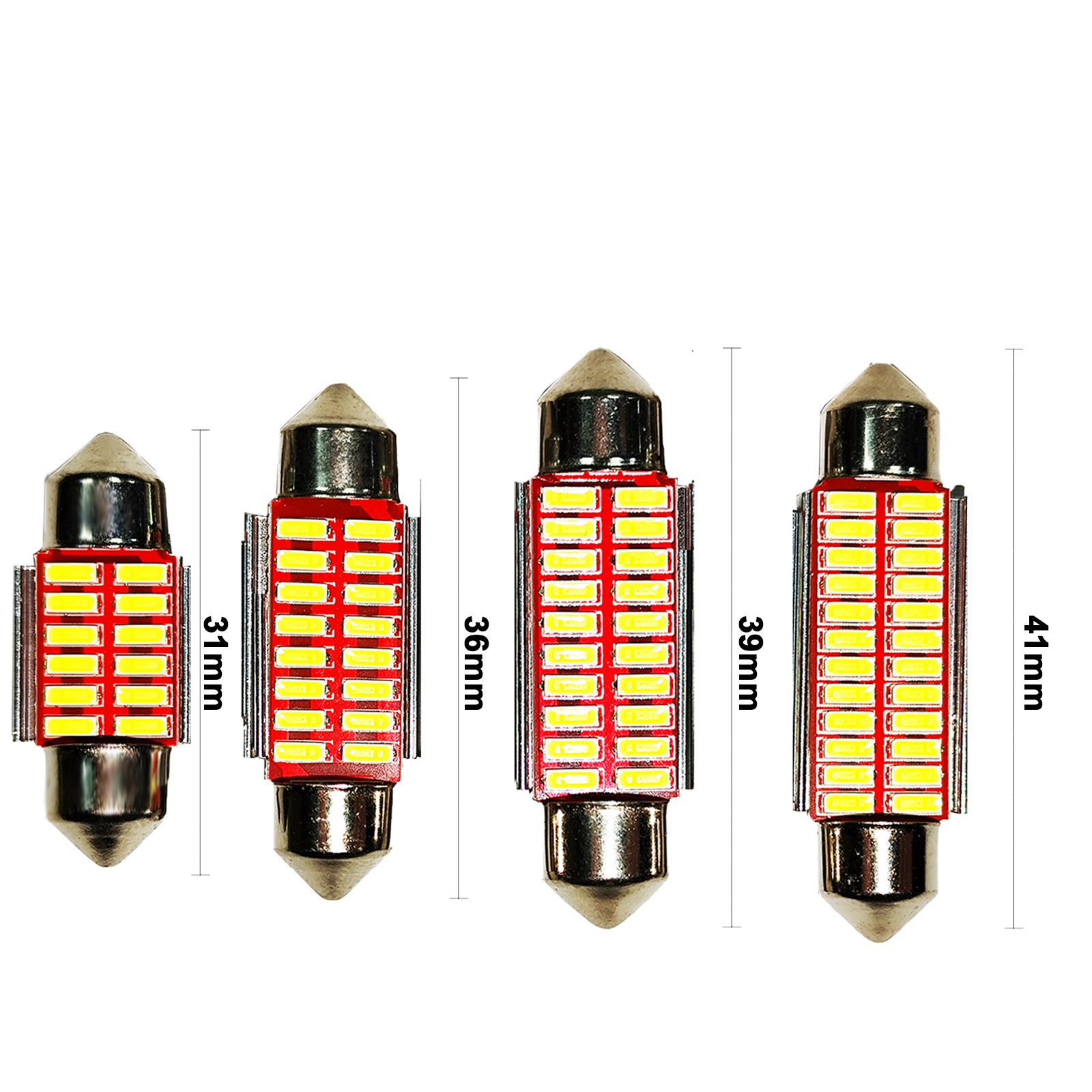 31 мм 12 огней; 36 мм 16 лампочек; 39 мм 20 лампочек; 41 мм 24 лампы